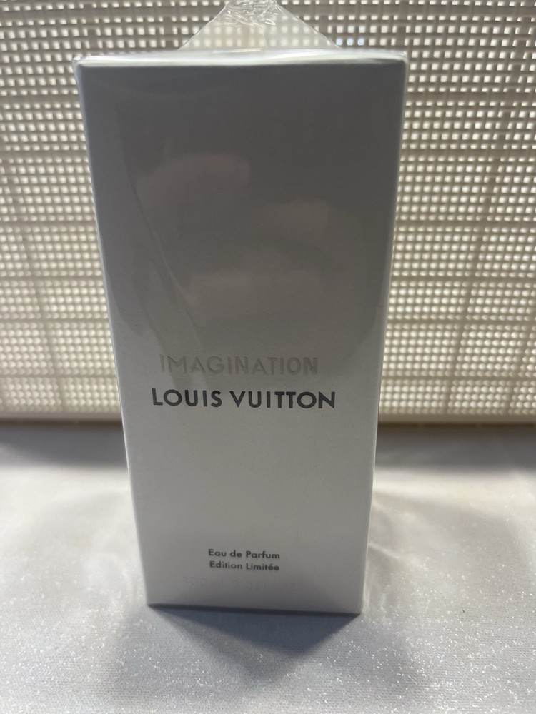 The product is a limited edition Louis Vuitton Eau de Parfum called Imagination, in collaboration with designer Sun Yitian. It comes in a size of 3.4 fl oz with a spray formulation. The fragrance is brand new and sealed, making it a rare and collector's item that is sold out quickly. This exclusive scent combines the luxury and creativity of Louis Vuitton with the unique vision of Sun Yitian, offering a fragrance experience that is both luxurious and memorable.