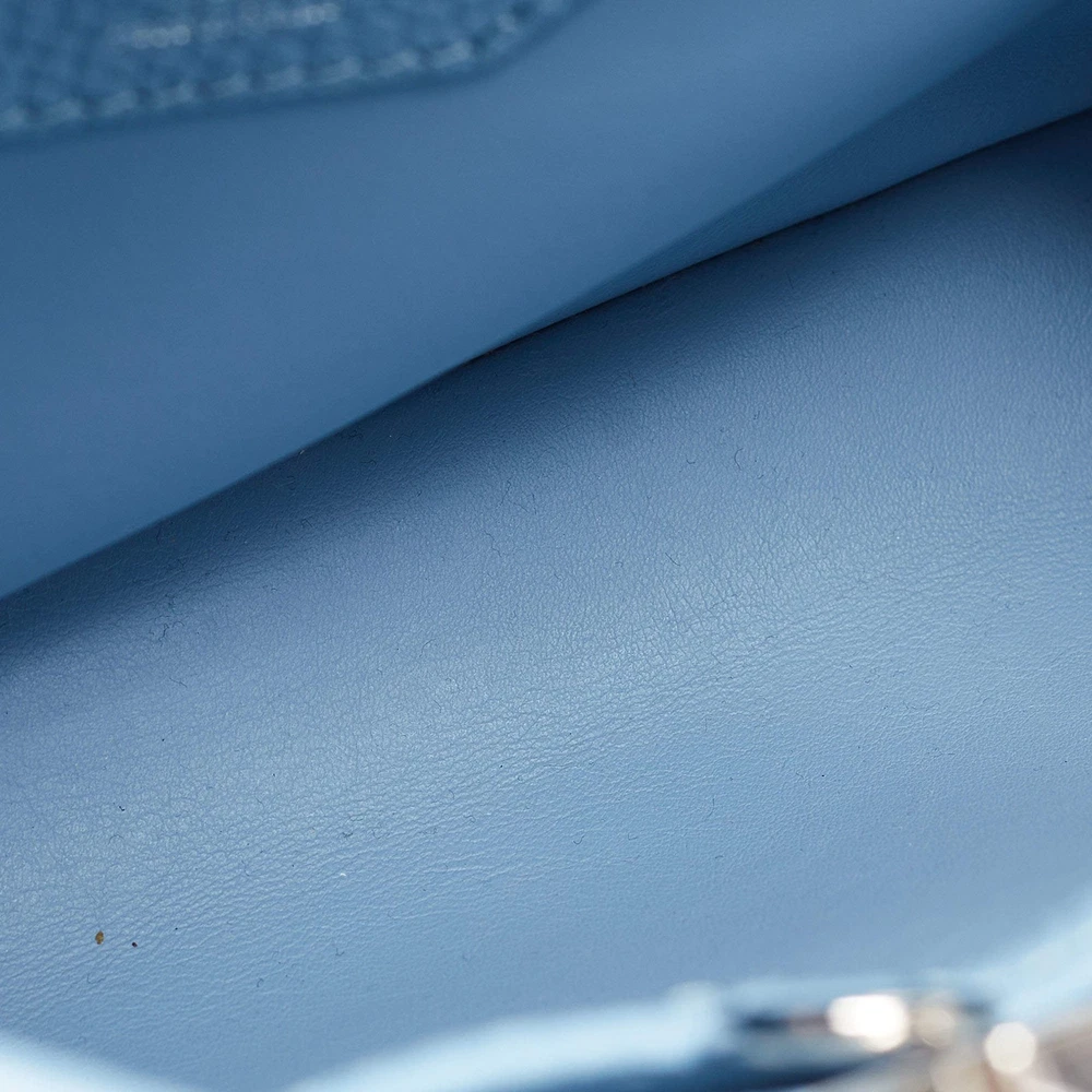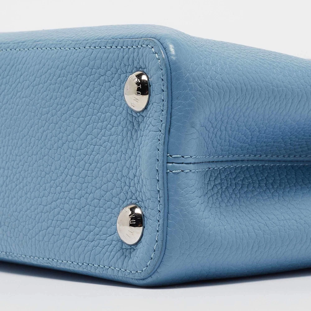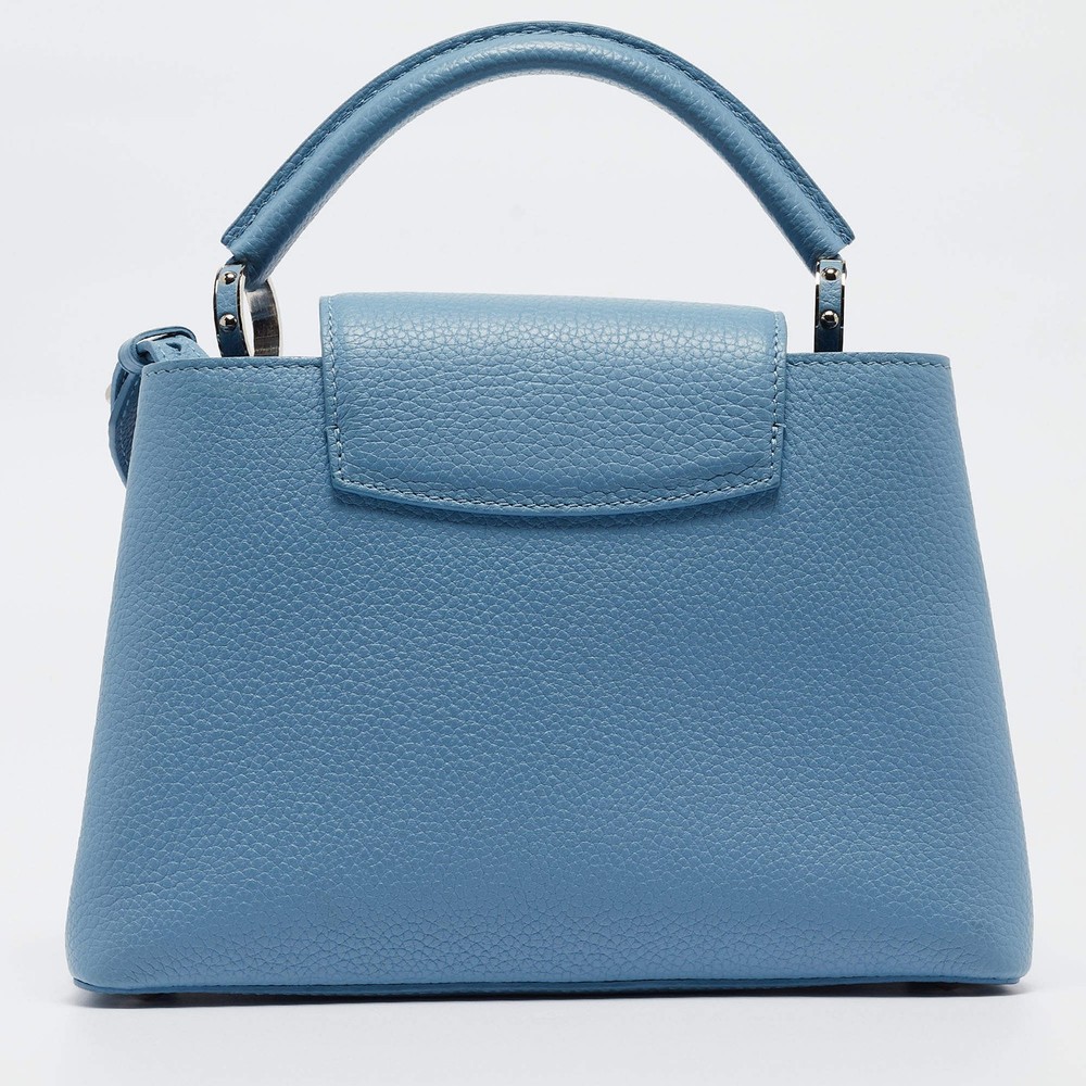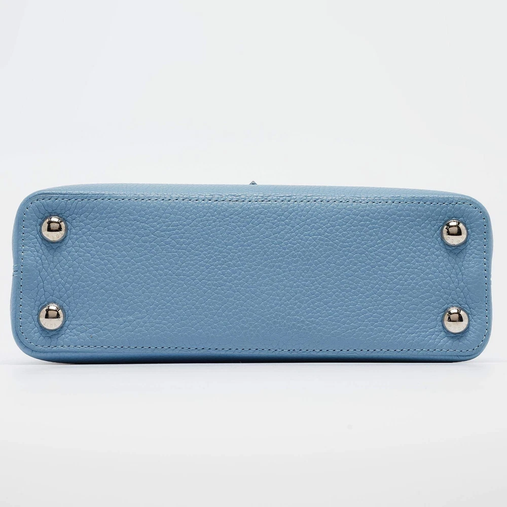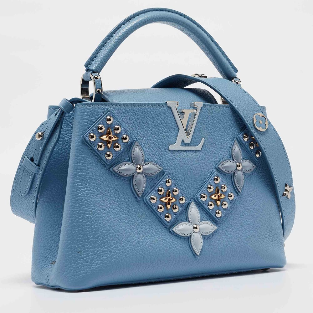 Our eBay Store About Us Contact Us Add to Favorite Sellers Louis Vuitton Light Blue Leather Mechanical Flower Capucines BB Bag Crafted with finesse, the Louis Vuitton Capucines BB Bag exudes charm and artistry. Its delicate light blue leather, adorned with a mechanical flower charms, captivates attention effortlessly. With meticulous craftsmanship and iconic LV detailing, this bag seamlessly blends luxury and whimsy, making it a coveted statement piece for the fashion-forward connoisseur. Product Details Brand Louis Vuitton Includes Original Dustbag, Info Booklet Certified by The Luxury Closet This item has gone through a detailed authentication process overseen by our experts. We offer a lifetime guarantee of authenticity on all our items. How We Check The in-house team of experts at The Luxury Closet is highly trained to verify the authenticity and the condition of the luxury products. They ensure that only 100% authentic items are put on sale.The evaluation process is unique with its own mix of assessment criteria and differs according to the category. Each item is evaluated based on the following combination of hallmarks, hardware, stitching, symmetry, material, craftsmanship, stamping, codes, hologram stickers, and packaging. Our authenticators also check if the items have been modified or amended (e.g., aftermarket diamonds, replaced batteries, repaired bags, etc.) Please note that this handbag may have a perfume scent, as it was stored and packaged in Dubai where such fragrances are commonly used. International Buyers Import duties, taxes and charges are not included in the item price. These charges are the buyers responsibility. Please check with your country’s customs office to determine what these additional cost will be prior to buying.
