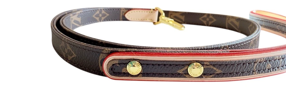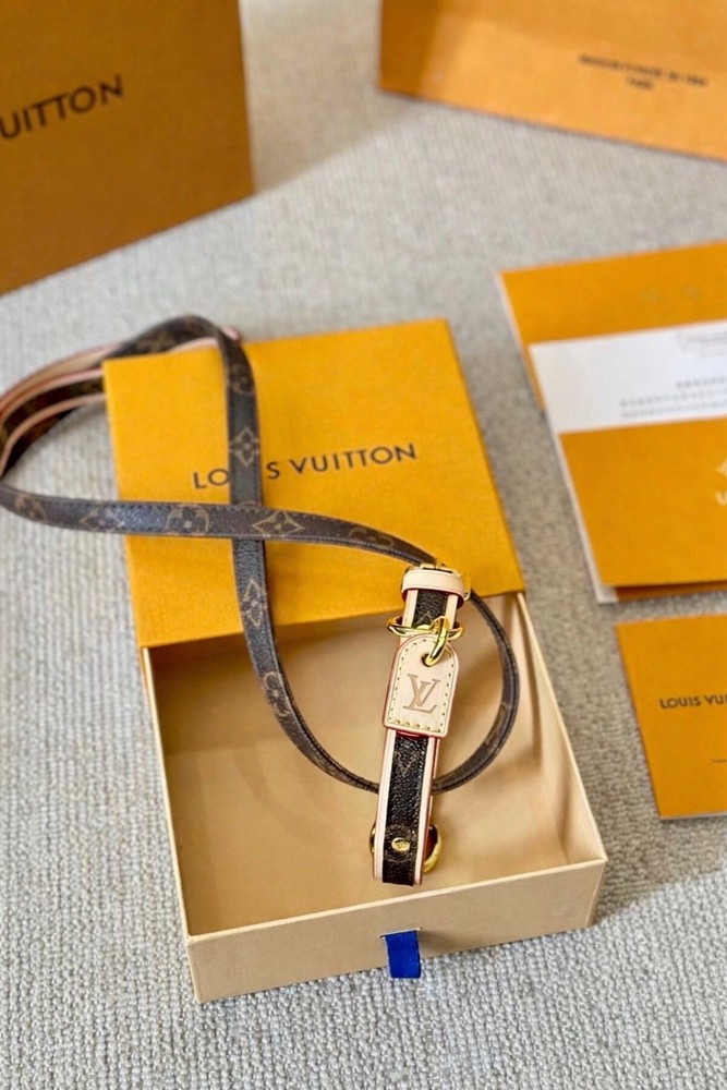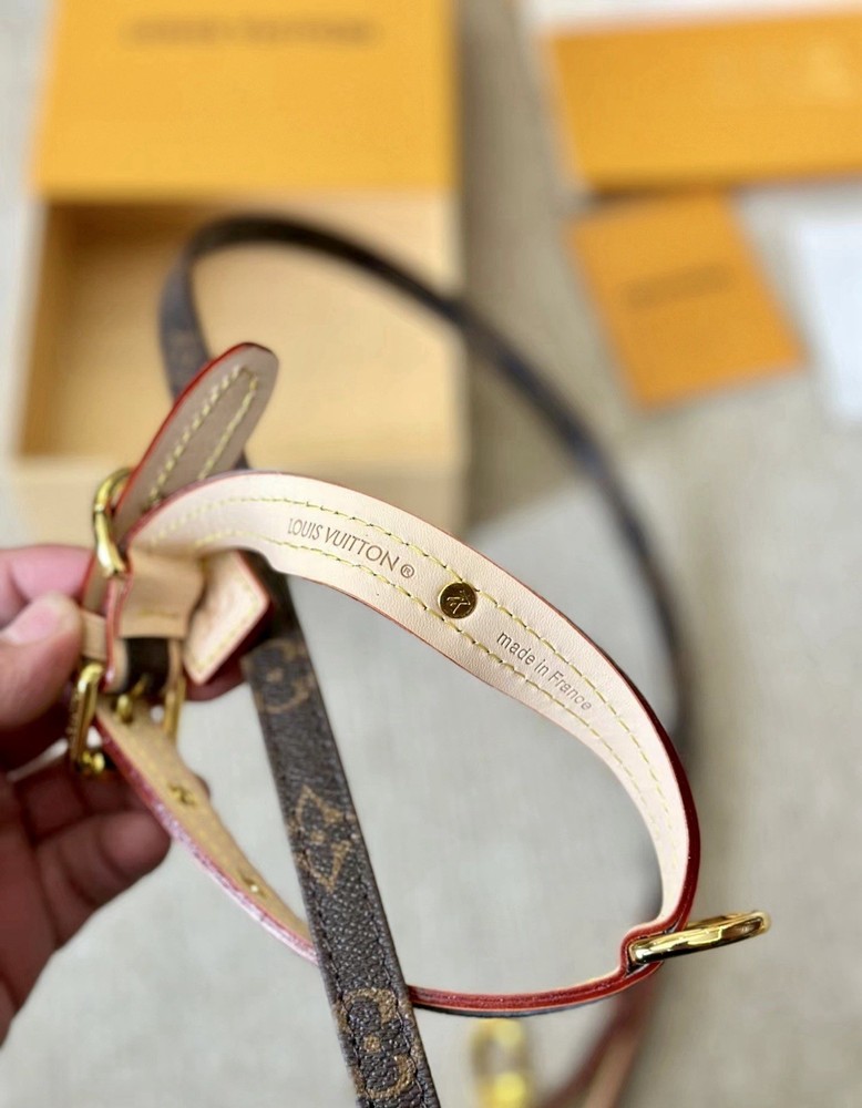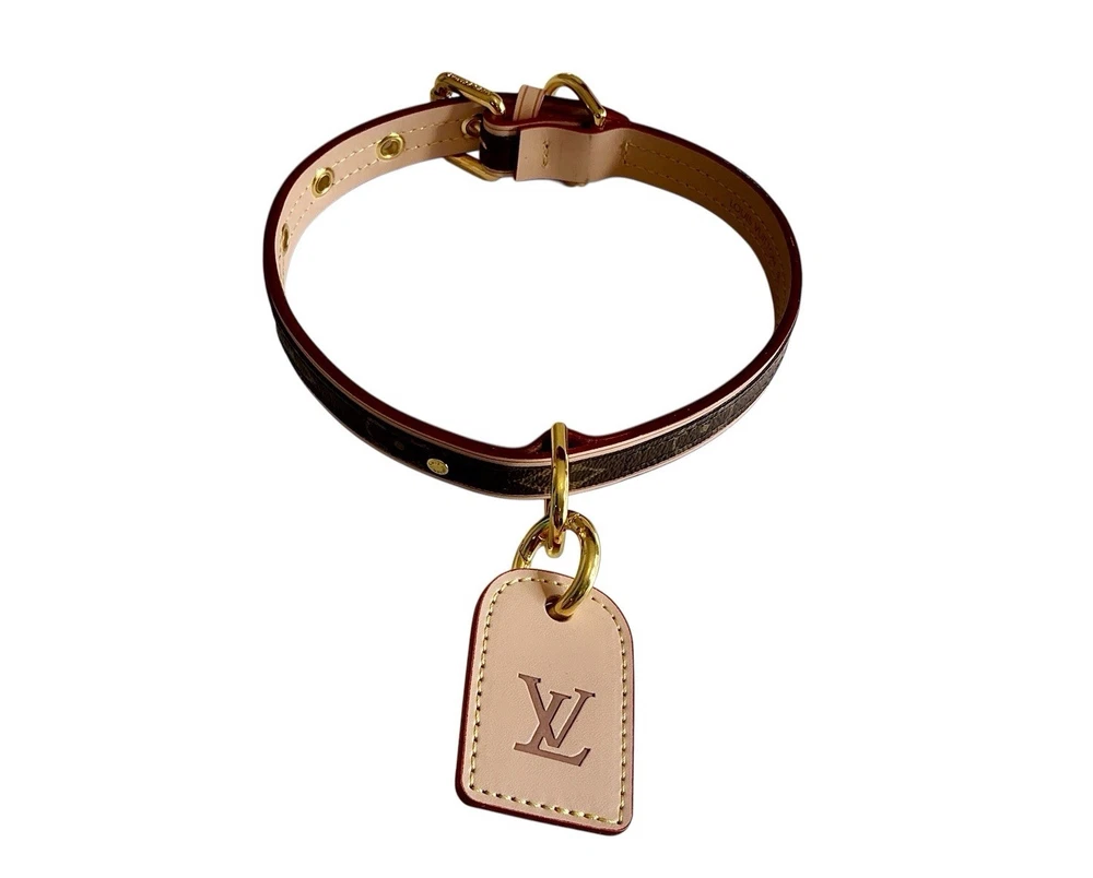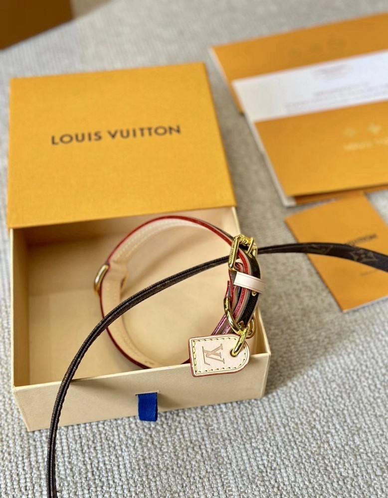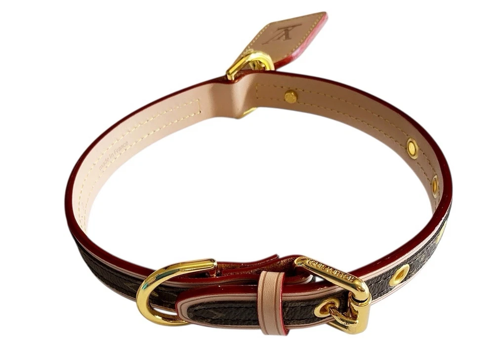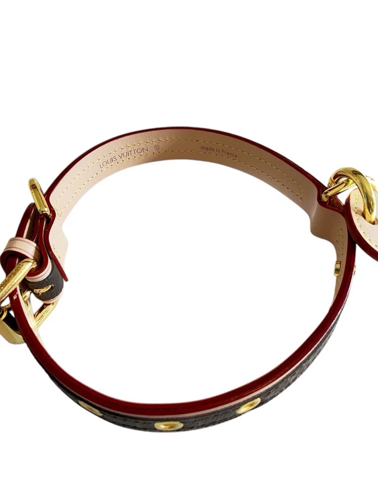 Louis Vuitton Monogram Baxter Collar & Leash Pet Set M58072 •Brand New in Box Signature Brown & Cream LV Monogram with Classic Red Detailing Collar Measures 18.5” L with holes from 12.5”-16.5” (animal neck size) and 3/4” W Leash Measures 43” L and 3/4” W