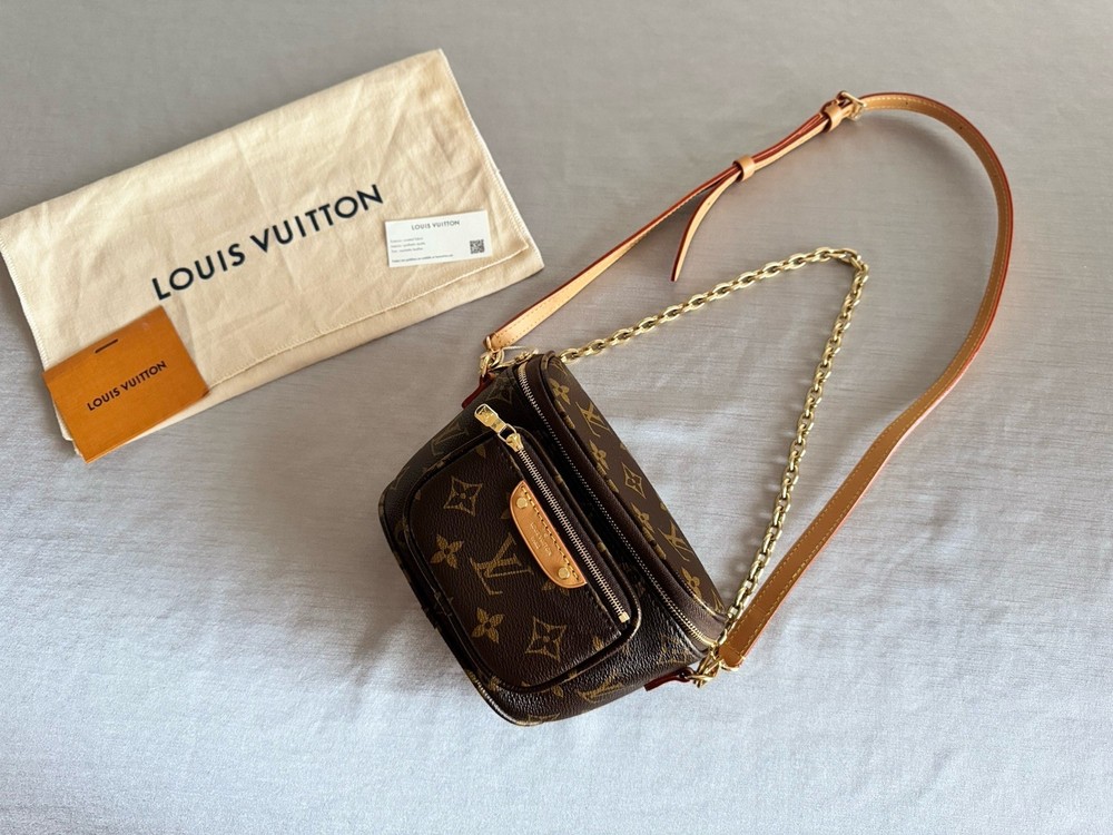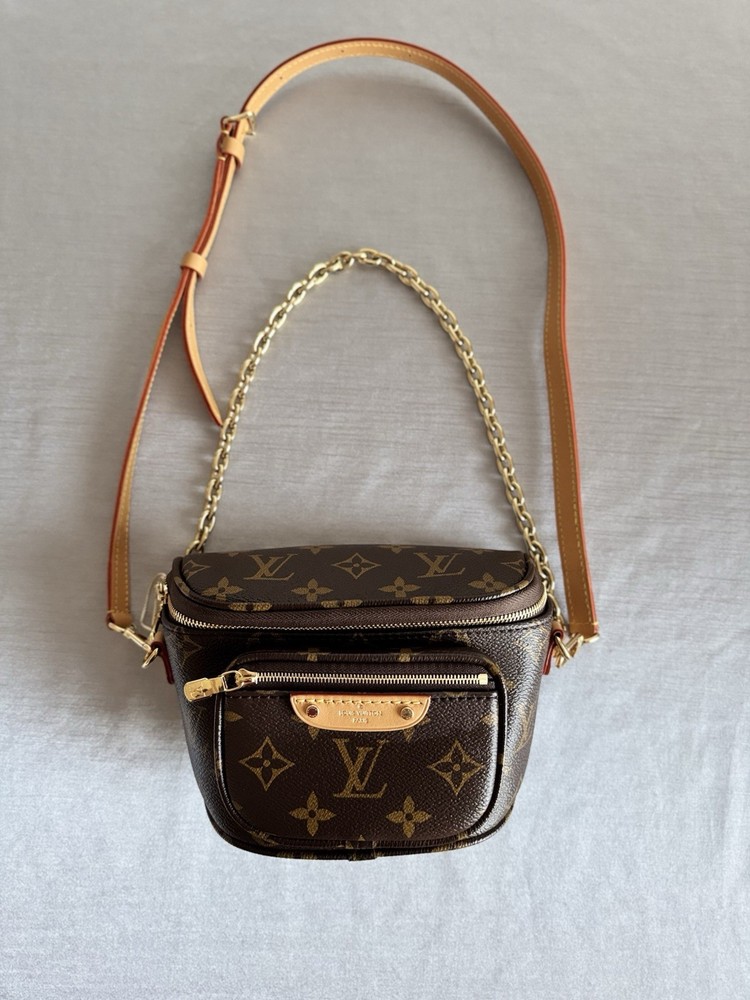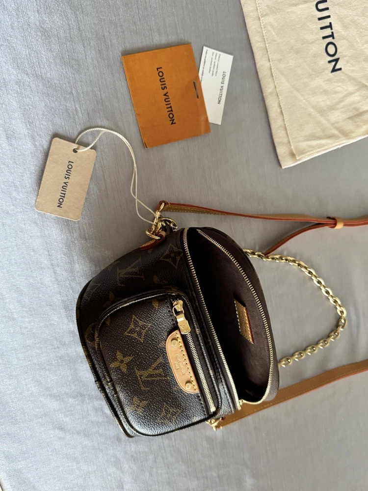 The Louis Vuitton Mini Bumbag M82335 Monogram Canvas is a stylish and compact belt bag designed for women. Made of durable canvas material with the brand's iconic monogram pattern, this brown bag is perfect for on-the-go use. With a mini size, it offers just enough space for essentials while adding a touch of luxury to any outfit. The belt bag style allows for easy wear and convenient access to your belongings, making it a practical and fashionable choice for everyday use. Bag does have original tag attached, however does not have original box. Mint new.