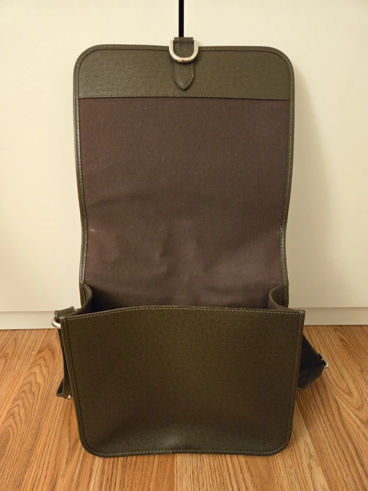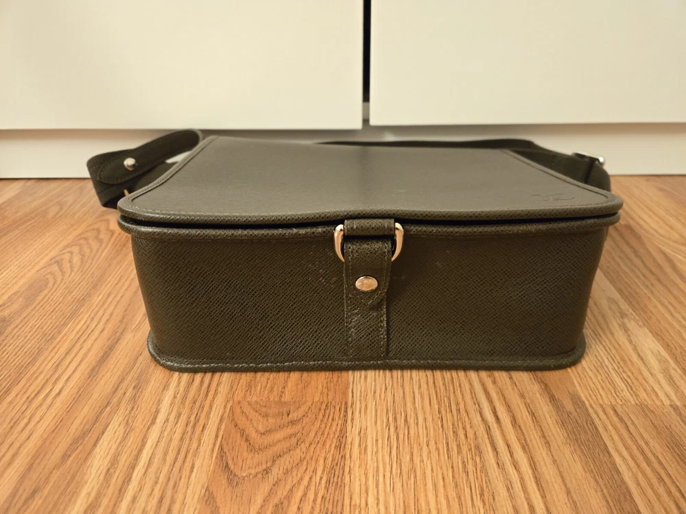 Material: Leather Product Line: Louis Vuitton Taiga Handle/Strap Material: Cotton Vintage: No Bag Width: 11.25 in Closure: Button Color: Brown Style: Shoulder Bag Bag Height: 10.50 in Size: 11.25 in x 10.50 in x 3.75 in Brand: Louis Vuitton Model: M32482 Bag Depth: 3.75 in Country/Region of Manufacture: France Department: Men Pattern: Taiga Features: Adjustable Strap, Outer Pockets, Inner Pockets Lining Material: Canvas
