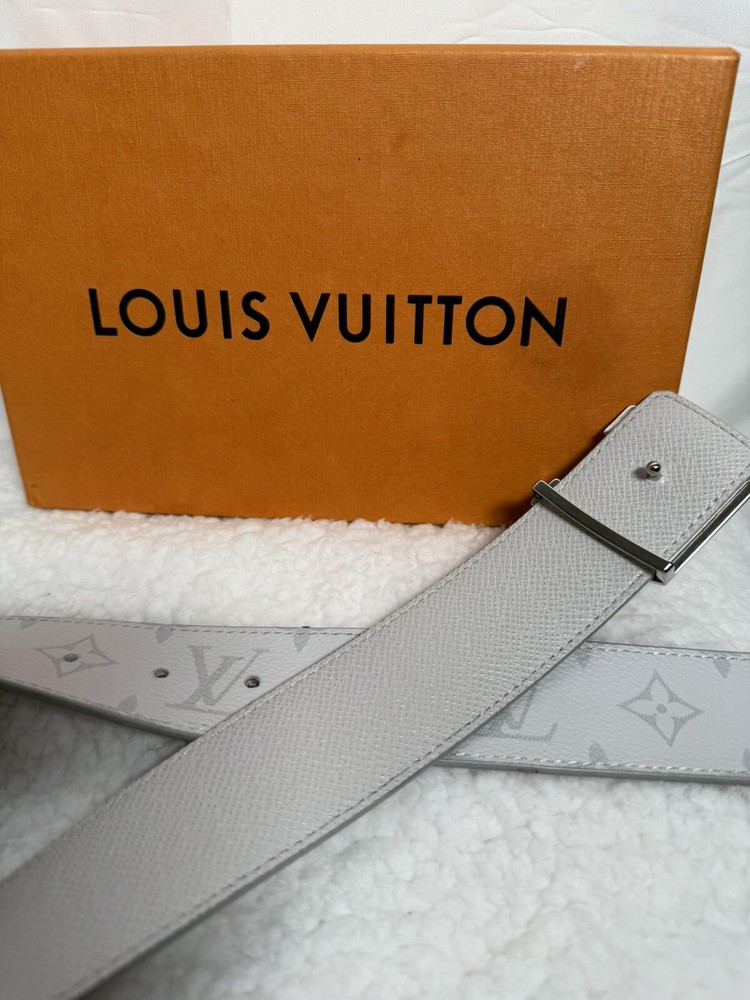 This Louis Vuitton men's belt is a must-have for any fashion-conscious individual. Crafted from high-quality materials, this belt is designed to last for years to come. The belt is white in color and features the iconic Louis Vuitton branding. It is the perfect addition to any outfit, whether you're dressing up or down. The belt is available in size M and is suitable for men of all ages.
