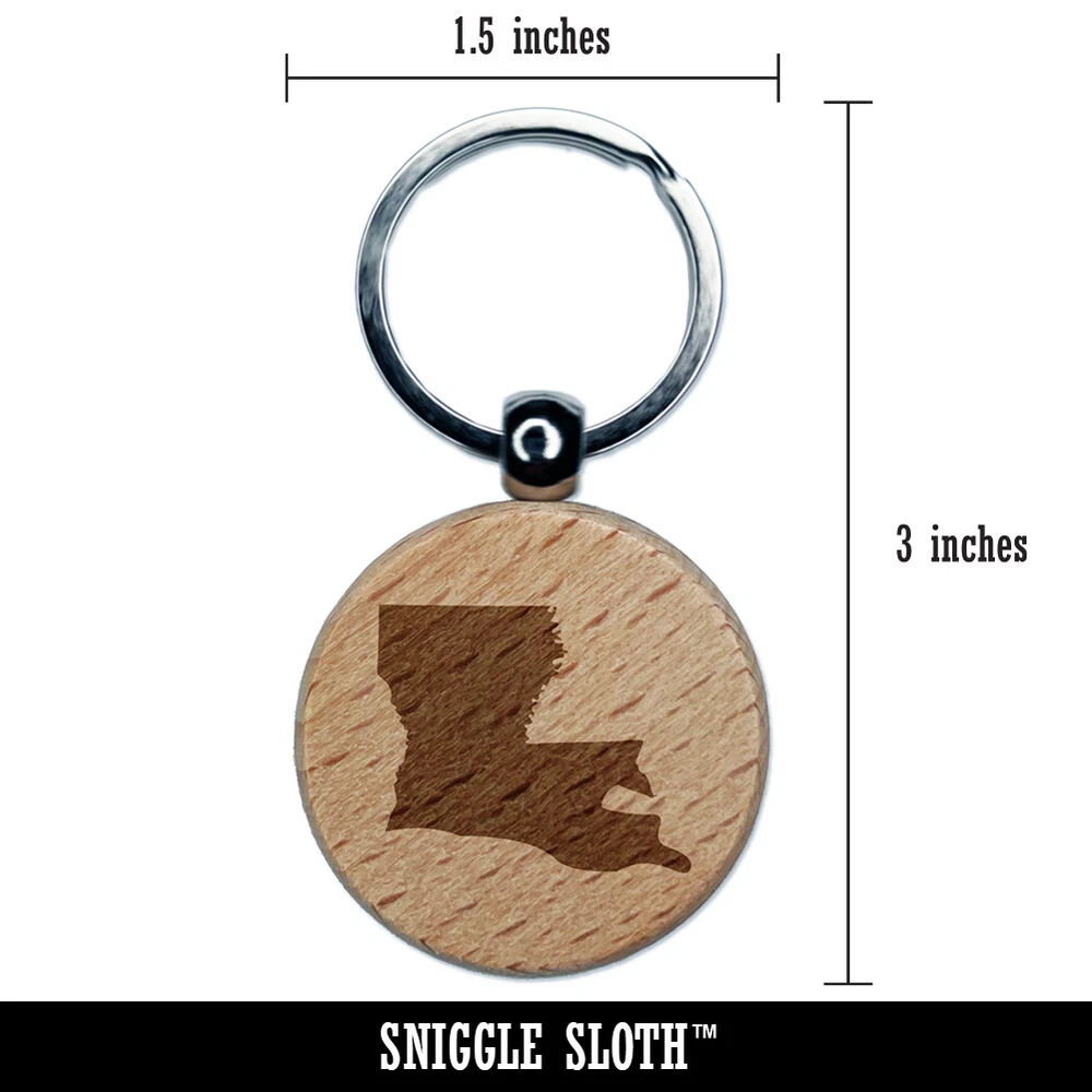 Louisiana State Silhouette Engraved Wood Round Keychain Tag Charm