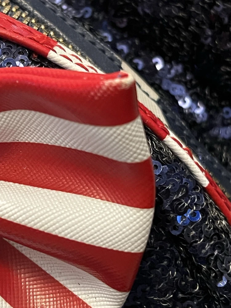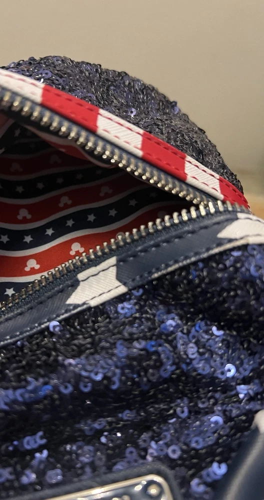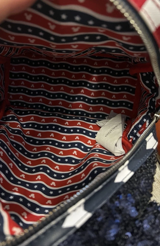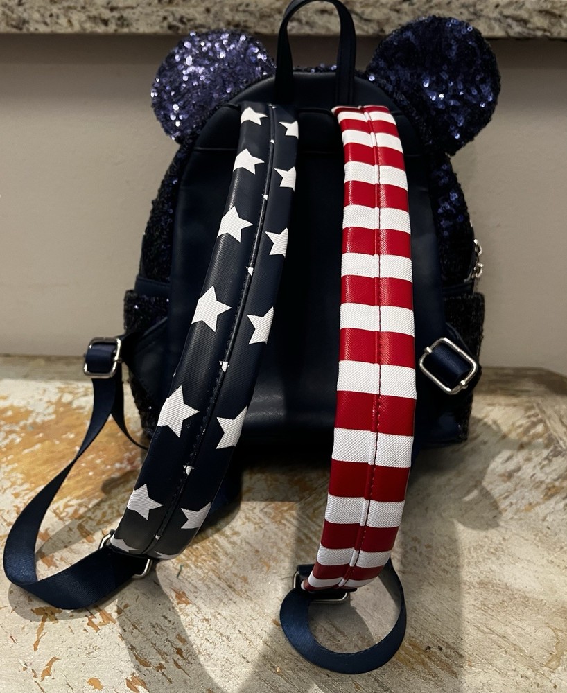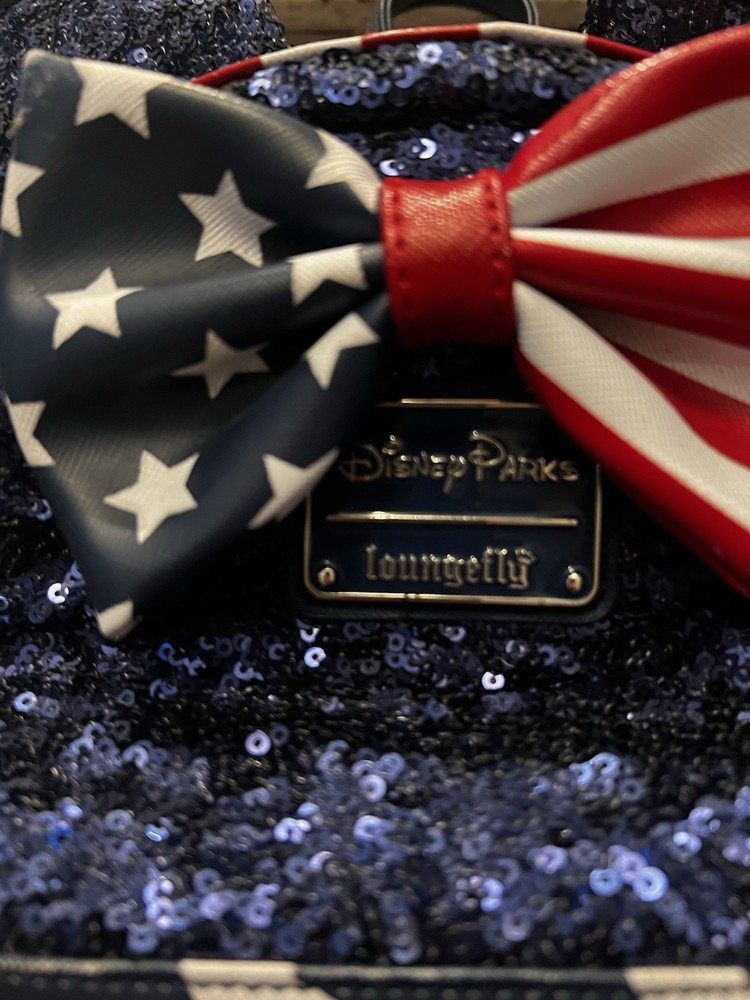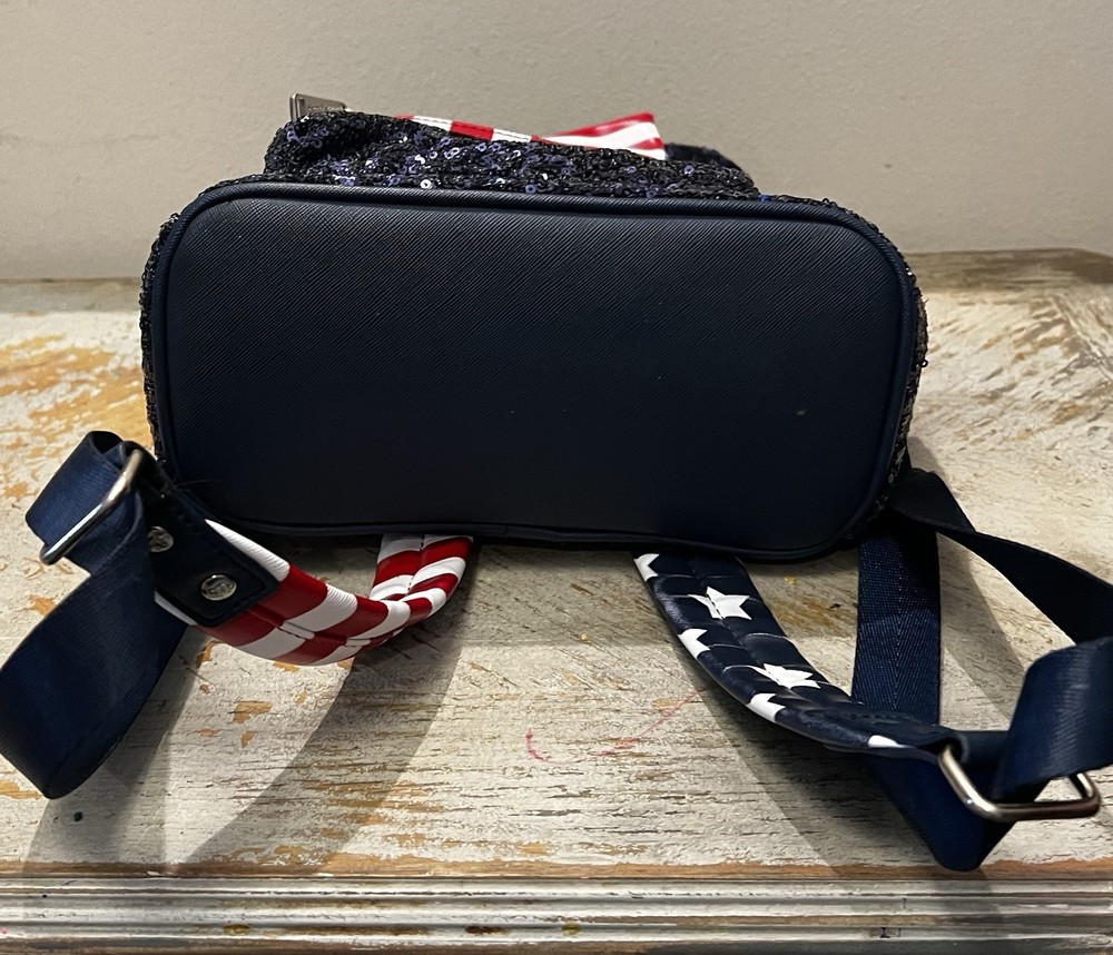 The Loungefly Disney Parks Minnie Mouse Sequined Stars and Stripes Mini Backpack is a stylish and collectible accessory featuring the beloved Disney character Minnie Mouse. With a patriotic theme of stars and stripes, this mini backpack in a blue color is perfect for fans of Disney and the brand Loungefly. Released in 2020, this backpack combines nostalgia with contemporary design, making it a must-have for any Disneyana collector or enthusiast.