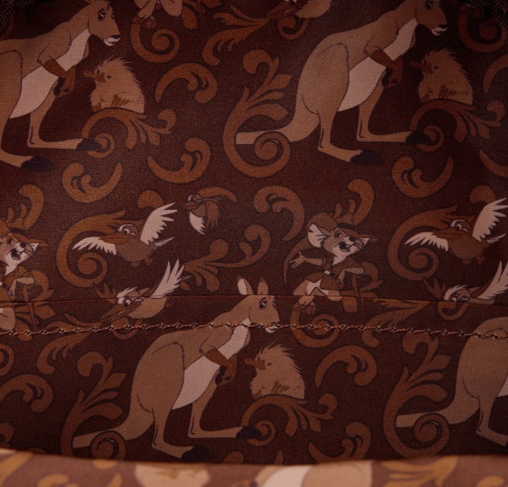 The Loungefly Disney The Rescuers Down Under Mini Backpack is an exclusive collectible featuring characters from the beloved Disney movie. The brown mini backpack is adorned with logos and imagery from The Rescuers Down Under, making it a must-have item for Disney fans. With its high quality construction and brand recognition from Loungefly, this backpack is sure to be a cherished addition to any Disney collection.