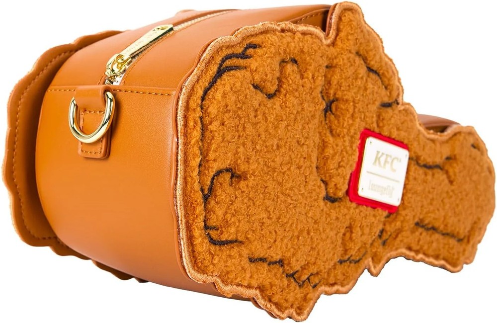 Finger Lickin’ Style Gets a Fun Twist for Loungefly KFC Drumstick Crossbody Bag.Serve up bold flavor and playful fashion with the Loungefly KFC Drumstick Crossbody Bag—a deliciously fun accessory shaped like the iconic crispy chicken drumstick. With rich textures, golden-brown tones, and clever design details, this bag is a standout conversation piece for fans of fast food and bold style.Crafted with Loungefly’s trusted quality and a roomy interior, this crossbody is ideal for daily outings, themed events, or collectors who love quirky, statement-making fashion.Add some crispy charm to your crossbody collection!Features:Whimsical Design: Shaped like a classic KFC drumstick with detailed texture and rich coloring.Everyday Functionality: Spacious zip compartment fits essentials like phone, wallet, and keys.Adjustable Strap: Includes a long, adjustable crossbody strap for versatile wear.Loungefly Quality: Made with durable faux leather and embroidered accents for lasting style.
