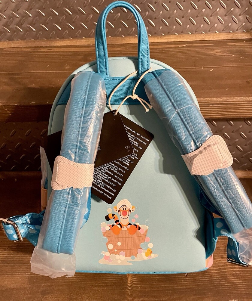 This Loungefly mini backpack features Tigger in Tub design, perfect for women who love the classic cartoon character. The exterior is made of high-quality faux leather material, ensuring durability and style. The multicolor scheme adds a fun touch to any outfit and the mini size is perfect for carrying essentials. Whether you're a fan of Tigger or just looking for a unique accessory, this backpack is a great choice.