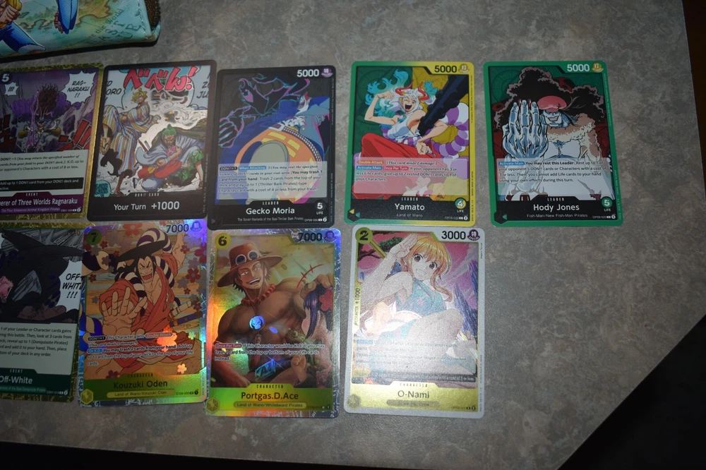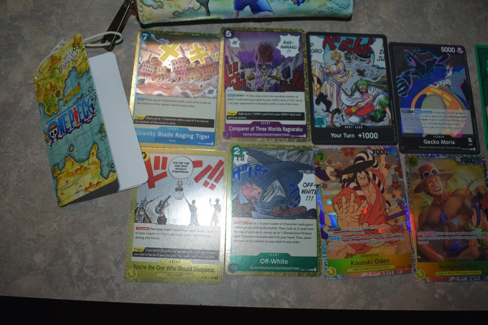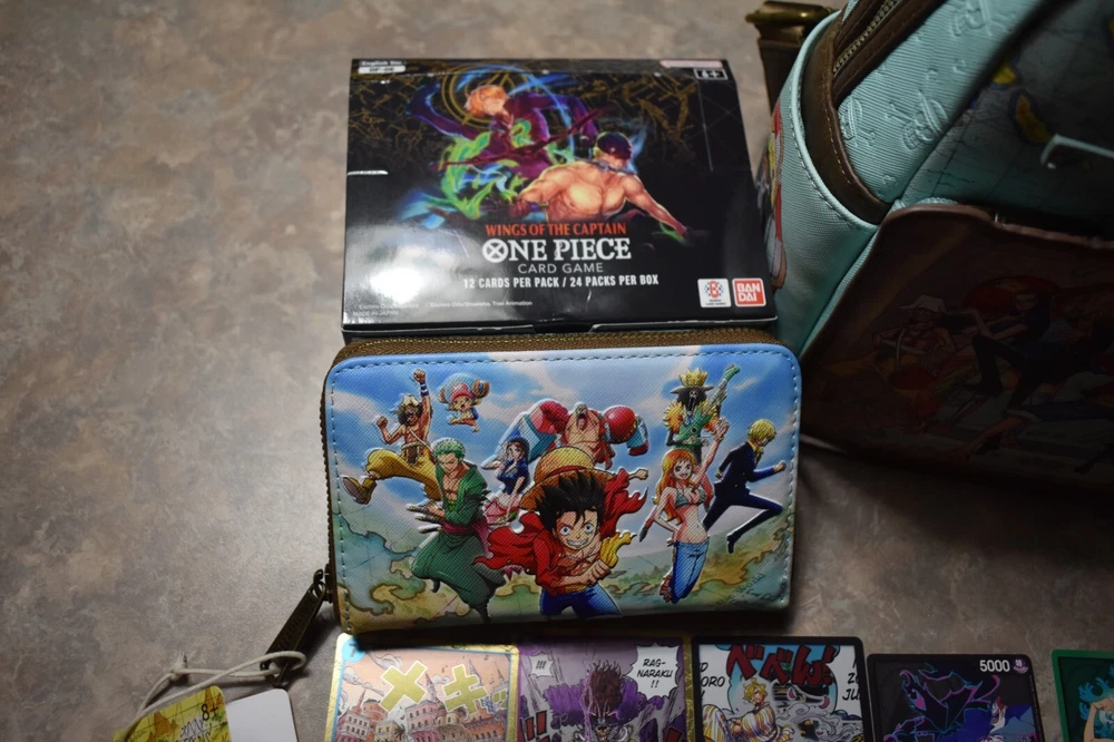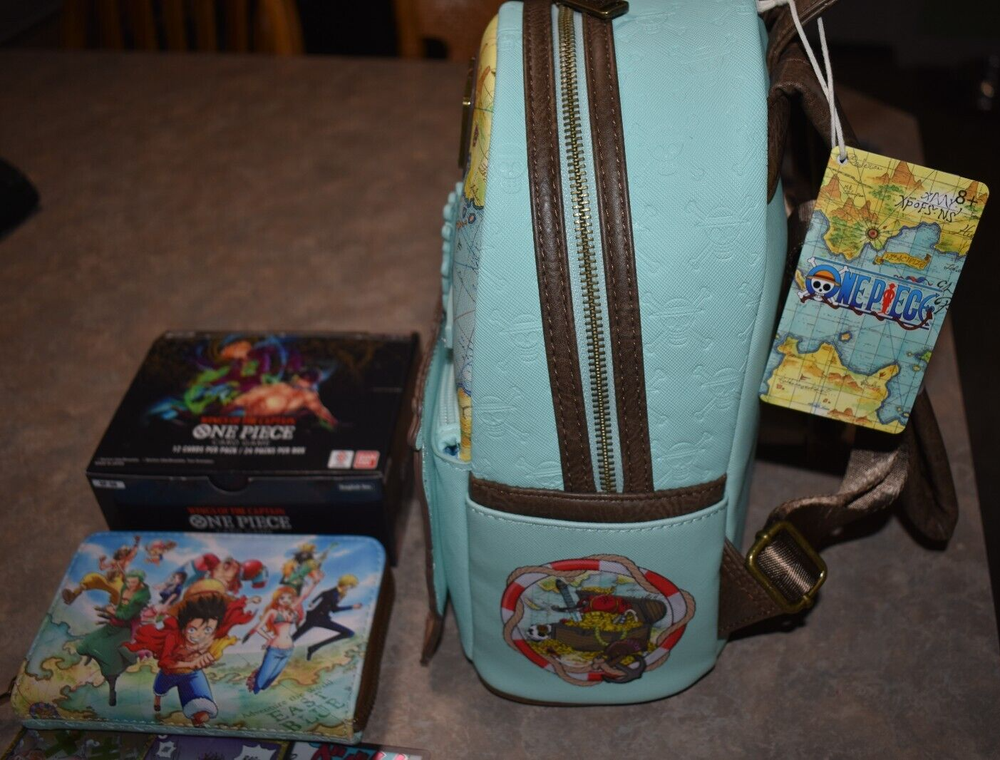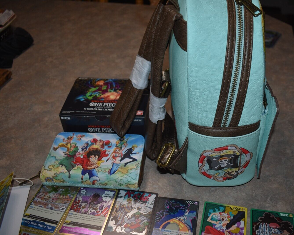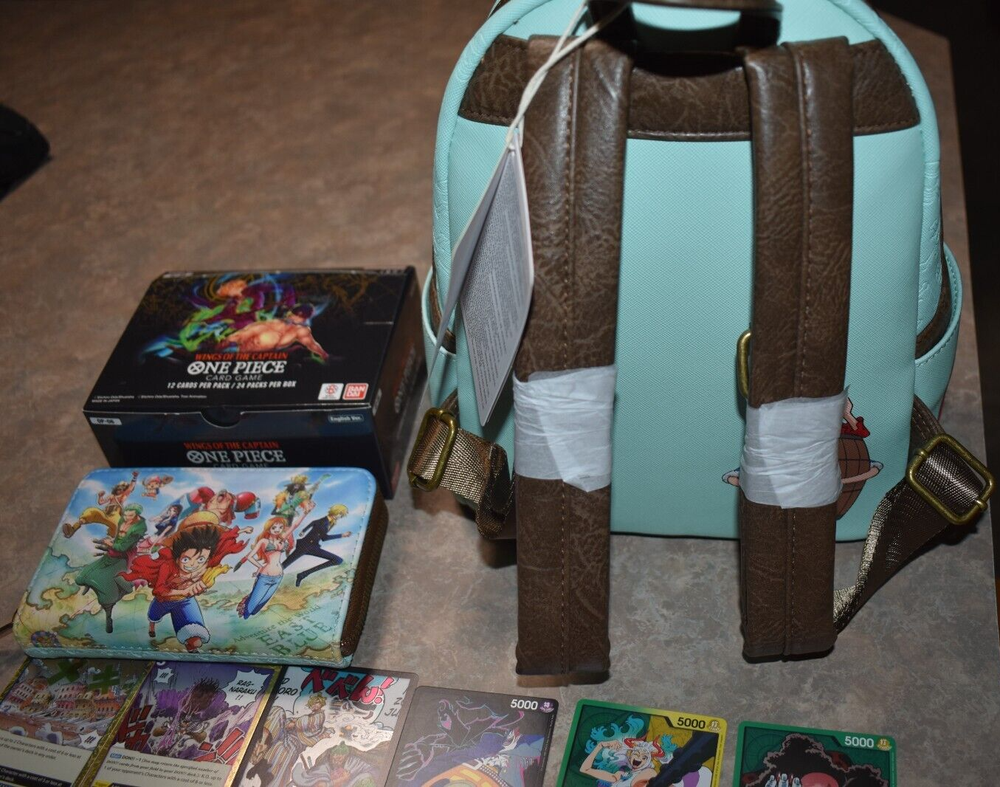 Included in this lot is a brand new with tags mini backpack and wallet set. As well as a opened Booster Box Included are 200+ Cards mostly common. You will also receive 3 leader cards, 1 Don Card, 5 Rare Cards and SR Cards. Commons will have doubles. Some Cards are from other packs not necessarily Box displayed. All mint condition. This is a great One Piece Lot! Please see pictures for more details, condition, type or message with questions before purchasing, thank you. Packed well and shipped fast.
