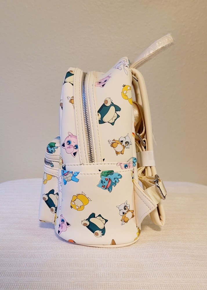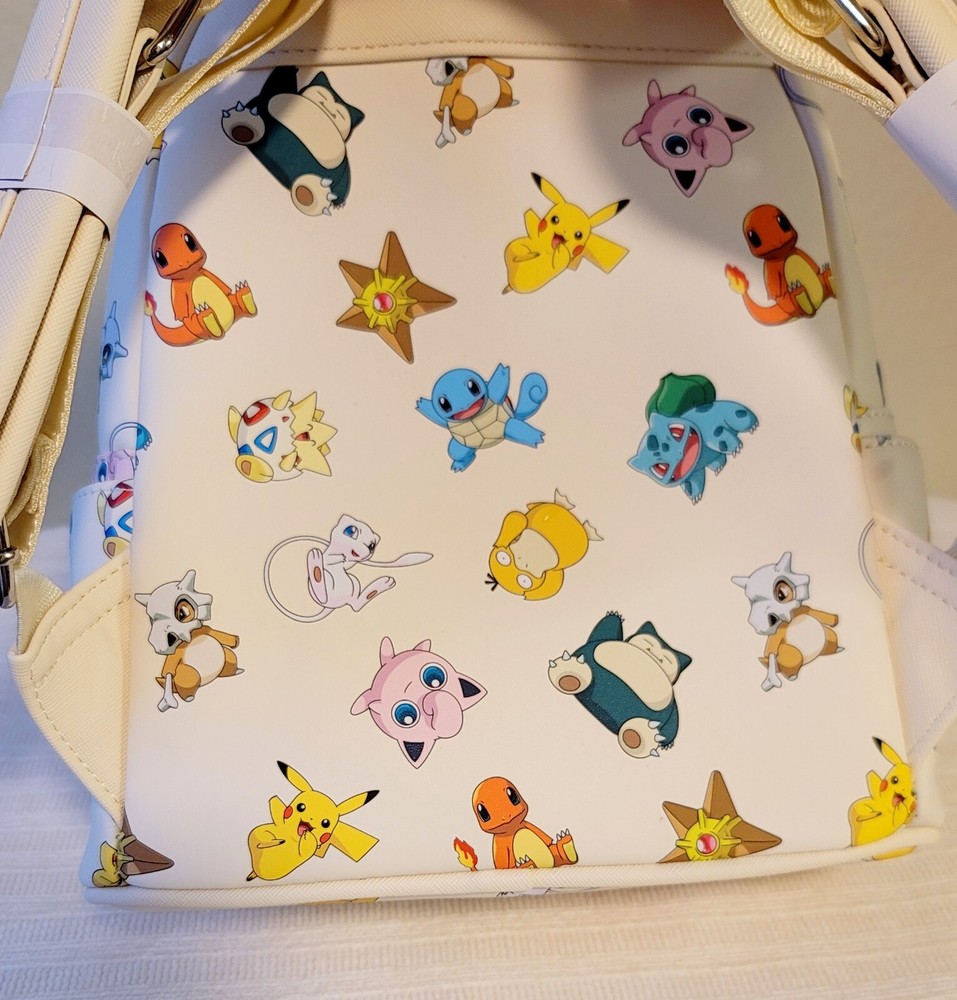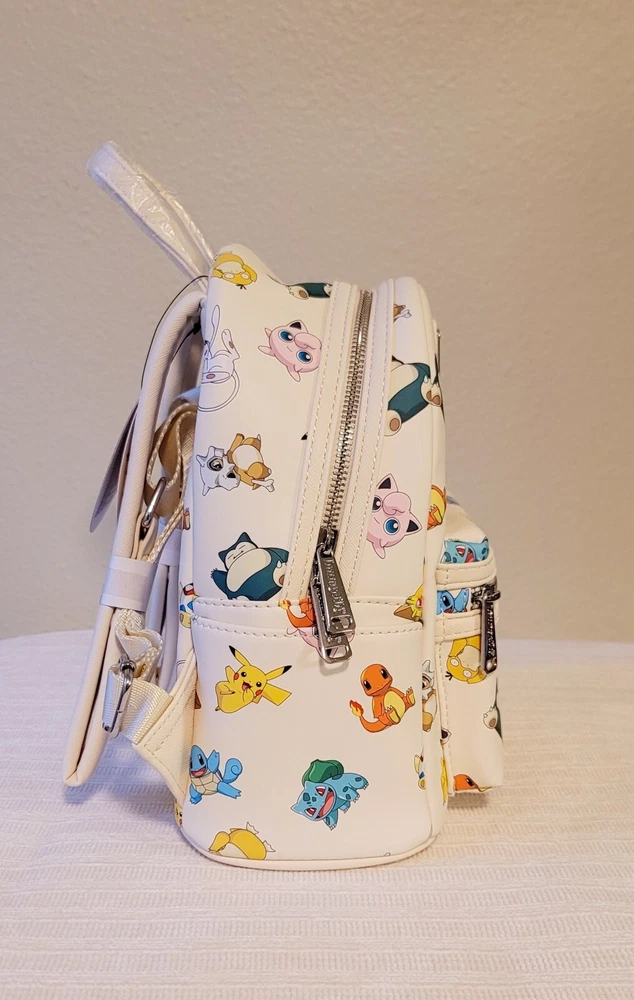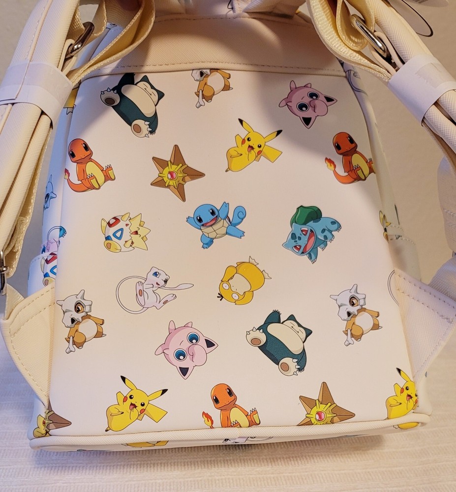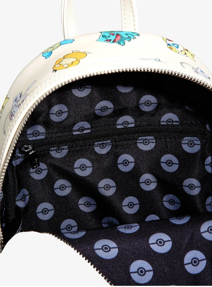 Condition: NEW, with tags. Never used. Limited edition release. No longer sold. This is a new exclusive Loungefly Pokemon Gen 1 All-Over Print mini backpack. This attractive and durable faux leather backpack has images of Pokemon's first generation characters. The lining is satin in dark gray with a Poke Ball print, and the hardware is chrome. The backpack has a front zippered pouch and two side pouches. Dimensions: 10.5"H x 9”W x 4.5”D If you would like to upgrade to faster/priority shipping, please let me know so I can update the shipping before you purchase. Ty!