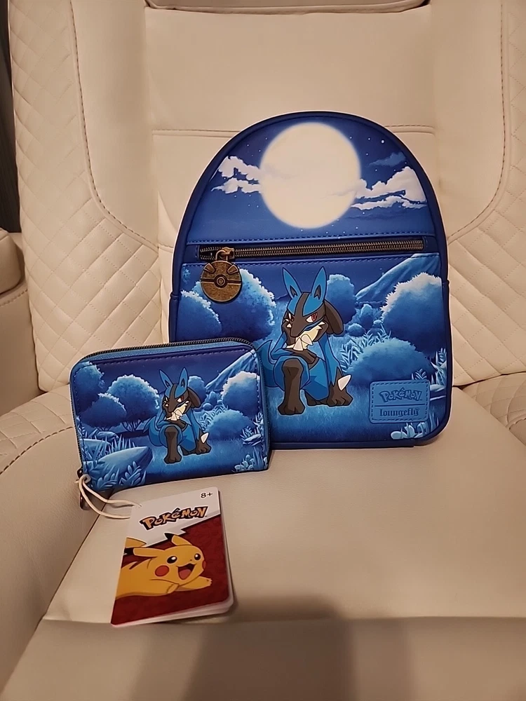 Mini Backpack: Vegan leather (polyurethane) Adjustable shoulder straps Flat front zipper pocket with zipper charm Antique gold hardware Bag measures 8.5" x 9.5" x 4.5" Wallet measures 3" x 5"