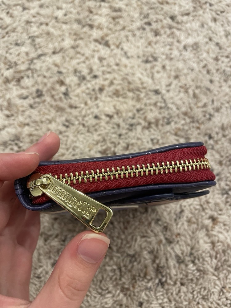 The Loungefly The Marvels Women's Wallet is a stylish zip-around wallet made of faux leather with a colorful canvas fabric type. It features a multicolor design with folding accents, perfect for fans of Marvel comics and the space theme. This one-size wallet is a great accessory for women who appreciate unique and functional items for their everyday use. The Marvel brand adds a touch of excitement to this practical and fashionable wallet. No flaws Smoke and Pet free home