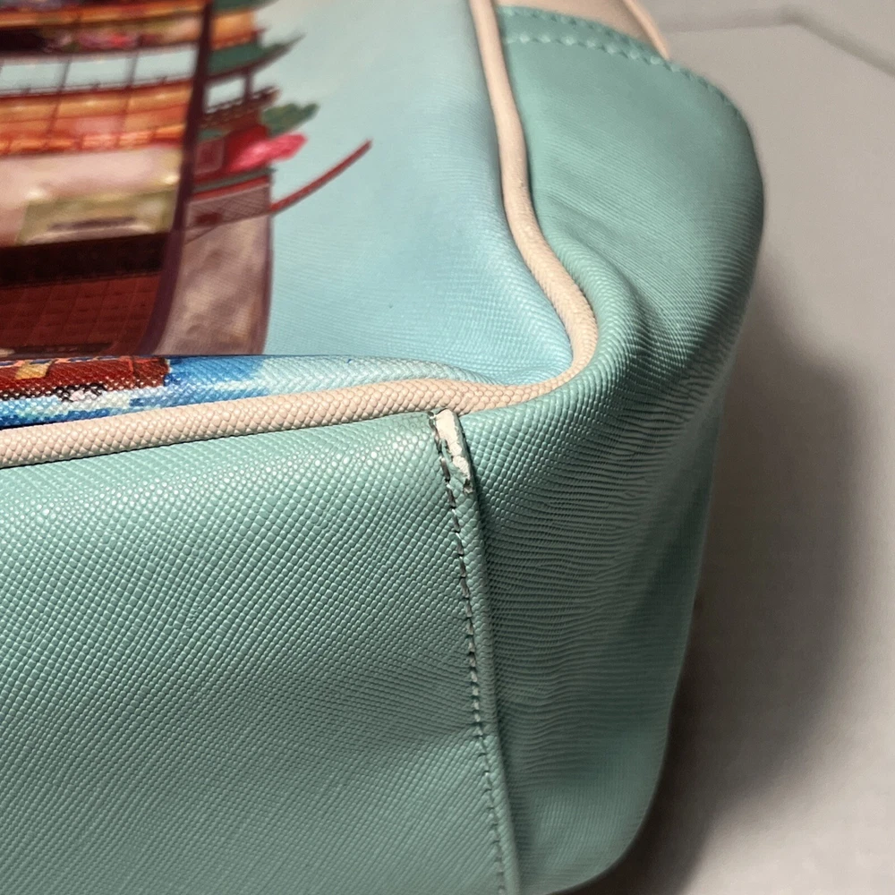 The box was *really* beat up by the time it got to me, but the backpack inside was perfect. Shipping issues were not the seller's fault, but our sorting center in KCK which has been wild. The backpack was even better than described! I thought it was one of those micro Loungefly backpacks, and no, this is nearly a full sized one. Since they don't make this anymore, this was more than a fair price. Far better than the Sylvanas Loungefly sellers out there! Will buy from again!