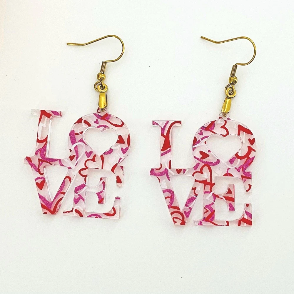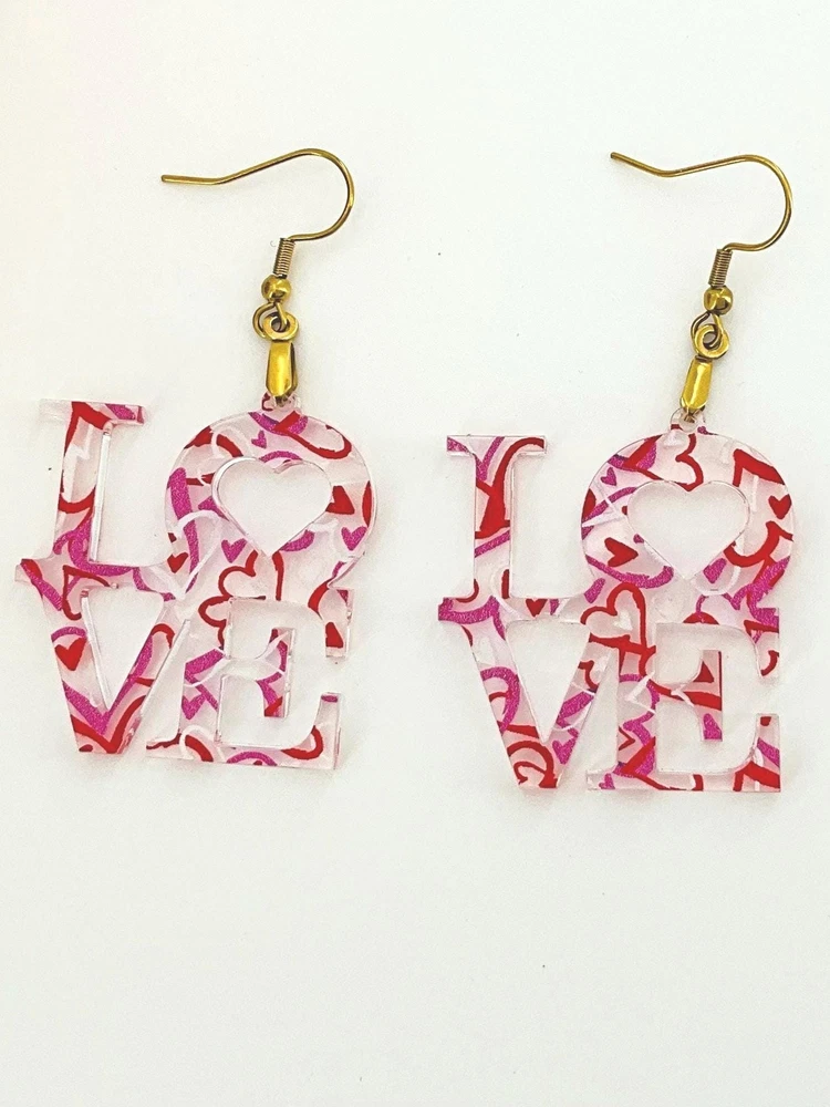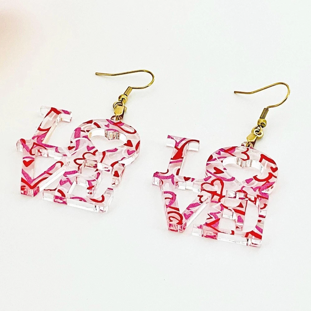 Looking for the perfect Valentine's Day gift for your girlfriend, mom, or teacher? These colorful and cute novelty earrings are the ideal choice! Handcrafted with love, these earrings are a thoughtful and unique Valentine jewelry piece that will surely make a statement. Surprise your loved ones with these adorable earrings that also make a great teacher gift. Make this Valentine's Day extra special with these one-of-a-kind earrings! Lightweight Acrylic Earrings on a Stainless Steel post. Earring hardware is stainless steel, and nickel/lead free. 🌟(Please see item details/highlights/pictures for size information)🌟 Each earring is laser cut from acrylic and assembled by hand in our studio. 🌟Due to variation in the patterns and handmade processes, each earring will vary earring to earring. No two earrings will be identical but will look similar to what is pictured! Each pair of earrings comes on an earring card with silicone backers and packaged in an organza bag. Perfect for gift giving! We currently do not offer more gift-wrapping options. Shipping: All purchases are shipped in a box with tracking so that they arrive safely to you! Currently we only ship to US postal addresses. We have a set standard shipping time of 1-3 business days from the time your order is placed. Everything in our shop is already handmade and ready to ship FAST! Please be aware that unexpected delays can occur, which you will be notified at the time of any such occurrence. Jewelry Care: 🌟Each piece is delicate! Avoid dropping or bending! 🌟Do Not expose to excessive moisture, please remove jewelry before showering, swimming, and sleeping. 🌟Avoid abrasives, perfumes, lotions, excessive heat, chemicals etc. These may deteriorate your jewelry and may damage its appearance. 🌟Clean with the soft cloth we have included in your package (and it is FREE of Charge!) No Returns: Due to hygienic and safety reasons, ALL SALES ARE FINAL. We DO NOT accept returns. In the event you have an issue with your purchase, please feel free to message us on Etsy to discuss any possible resolution.
