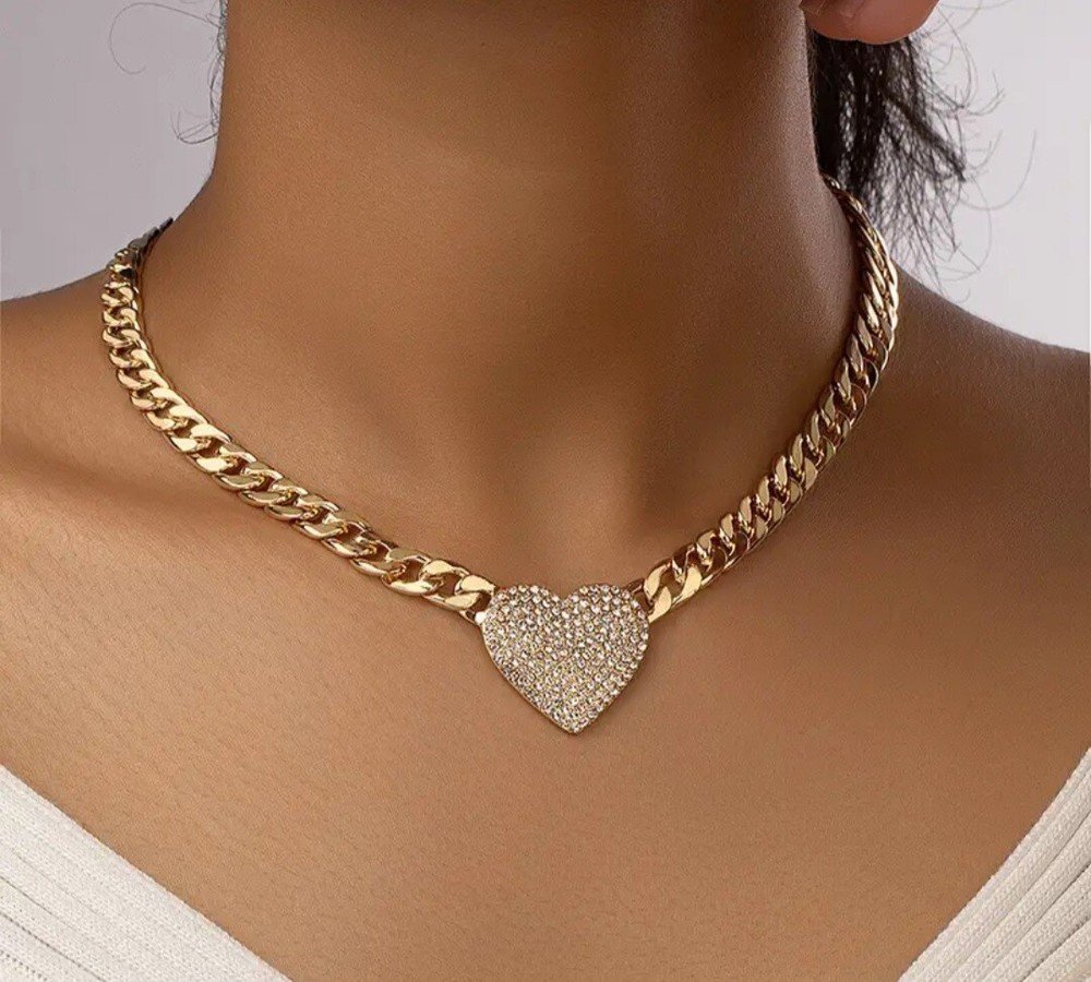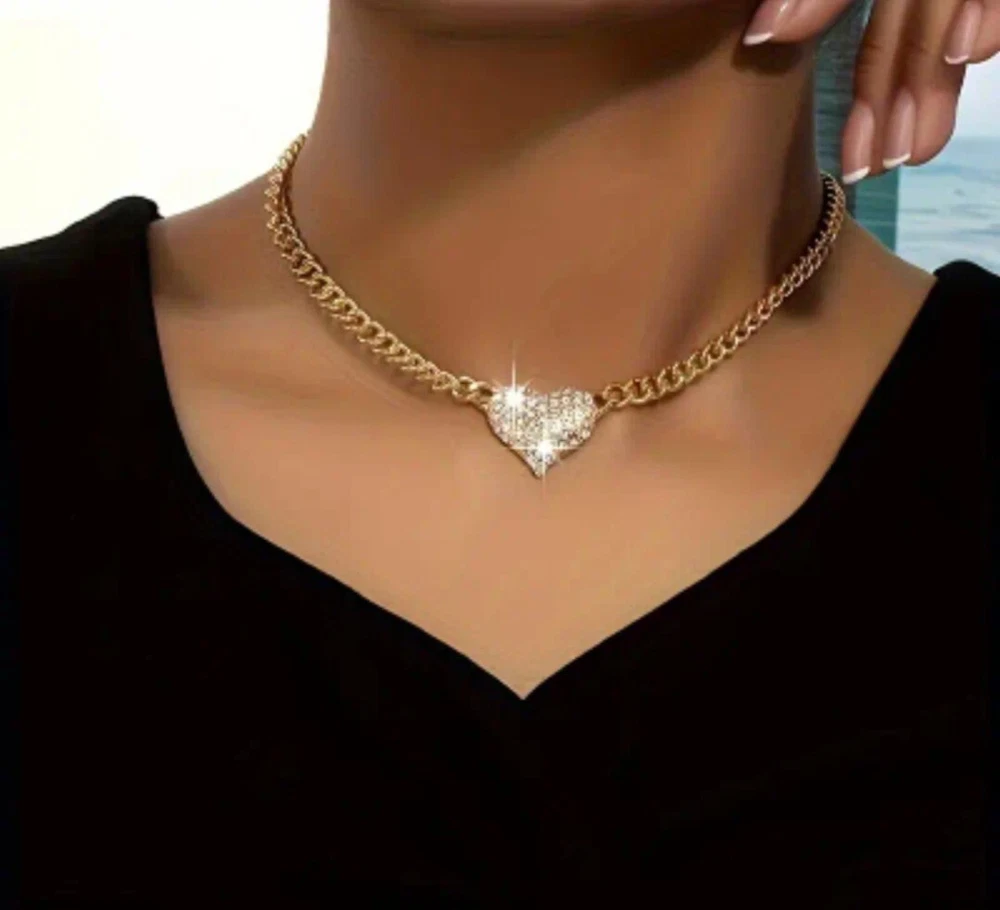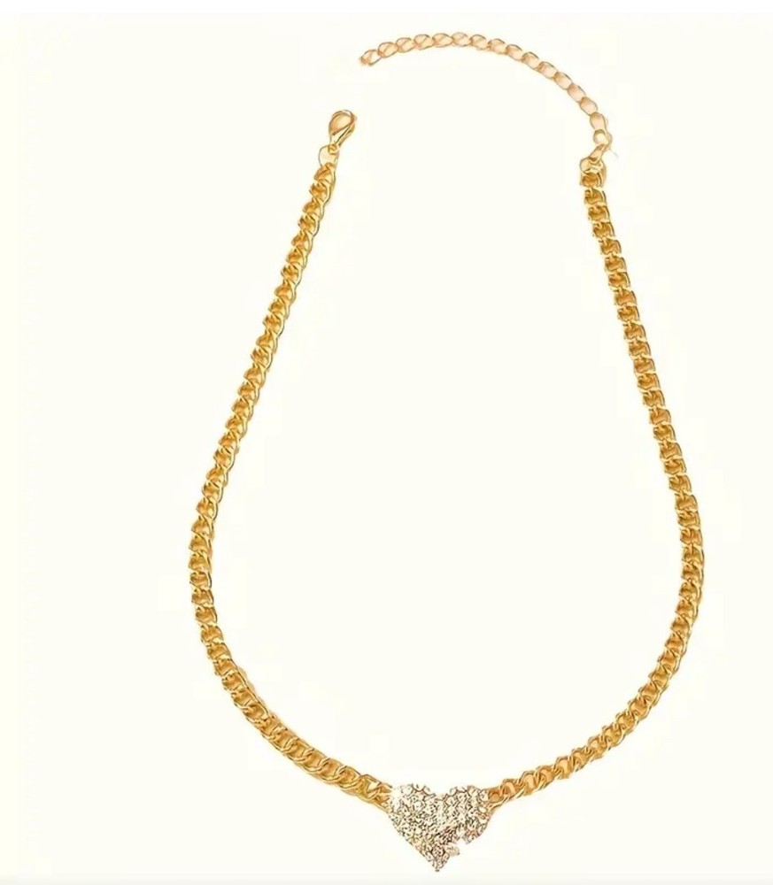 Gold Plated Chain Rhinestone Heart Pendant Necklace Simple Elegant Delicate Female Necklace Size Approximate. Necklace Chain: 35cm + 7cm. Heart Pendent: 2.5 cm Please check all pictures for full description . If any question, please don't hesitate to ask. As different computers display different colours, the actual product colour may be slightly different from the image. Buy with confidence. For any issue, please contact us first I’m sure any problem can be easily taken care of.