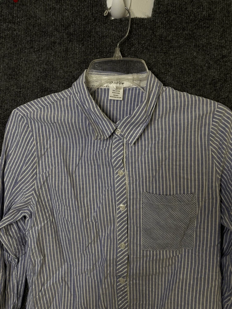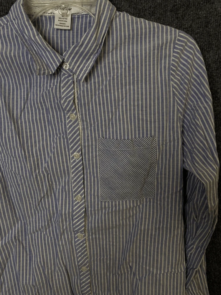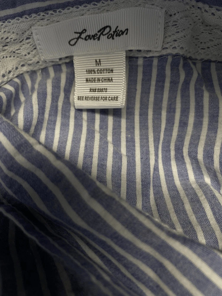 Love Potion Shirt Women's Size M Medium Ladies Blue White Stripes Casual Dress Measurement Armpit to Armpit 19" in very good condition 100% cotton