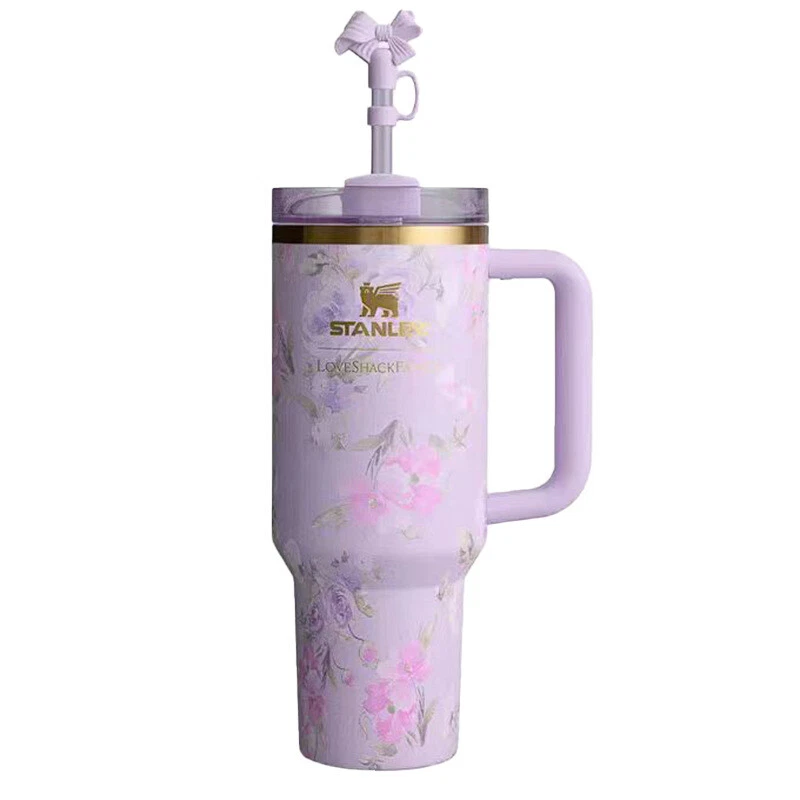 Love Shack Fancy Quencher H2.0 Tumbler 40oz Stainless Steel Cup Purple Best Gift