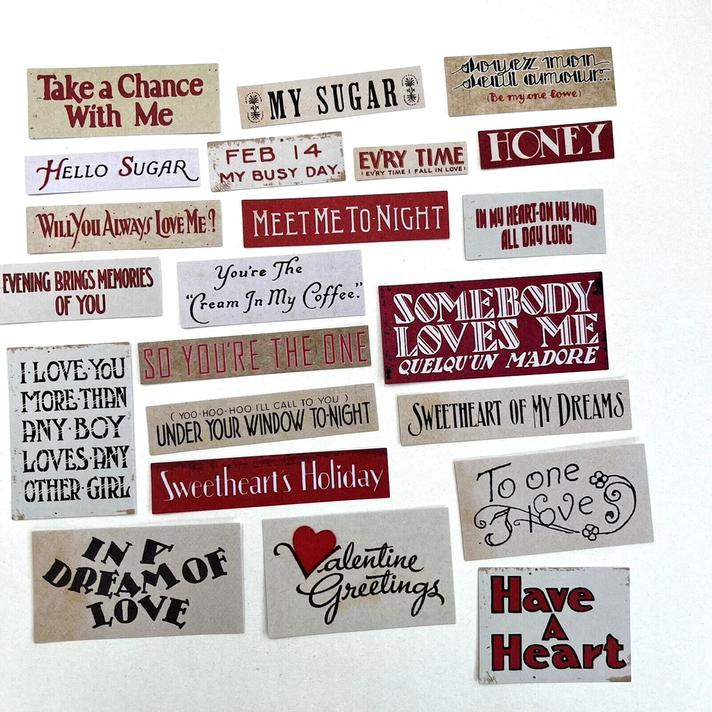 22 stickers. Phrases and words for Valentine's Day. The sticker in the last photo measures approx. 2 5/8 x 1 5/8 inches. These are a matte paper sticker. I have more stickers, washi tape and paper for sale. I do combine shipping. Please put all the items you want to purchase in ONE cart and then pay. I will refund you the difference in shipping after shipping label is printed. Let me know if you have any questions through eBay messaging. Thank you for stopping by!
