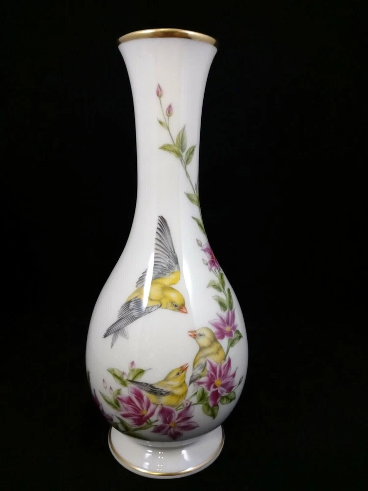 DETAILS · Beautiful vintage porcelain bud vase with a lovely Goldfinch & floral pattern - and highlighted with gold trim. Very good vintage condition - no chips, cracks, or repairs. I found no flaws. Approx. 8” tall. - VISIT MY EBAY STORE! - I am selling many other vintage items and offer combined shipping; Message me for a quote. _____________________________ If there is any issue you are not happy with, please message me directly. I aim for 100% satisfaction! _________________________________________