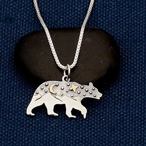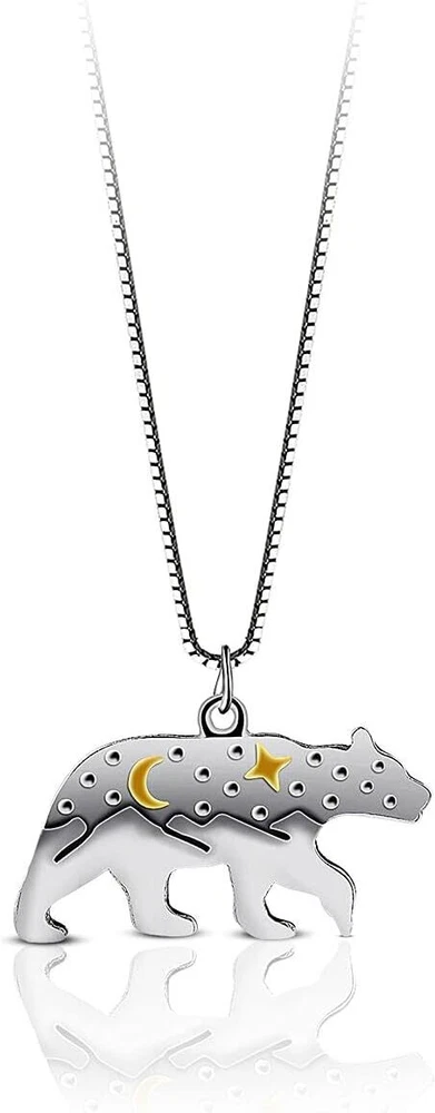 Design:the Polar Bear pendant necklace engraved with mountain, star and moon,there is a Call for protect the endangered polar bear and protect the natural environment.