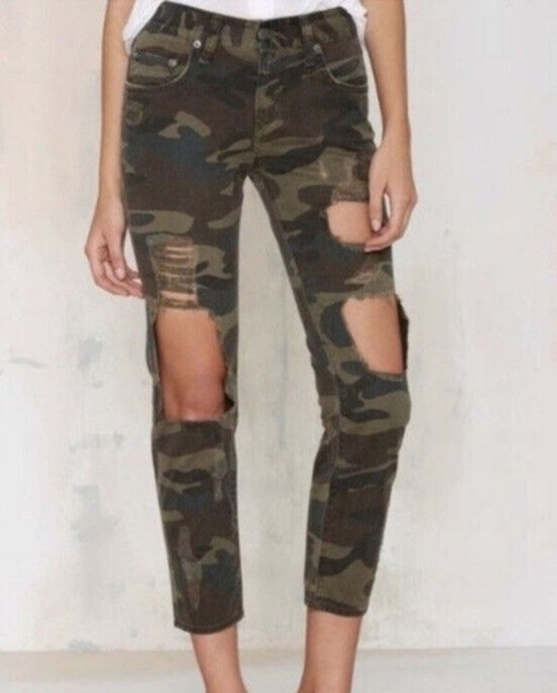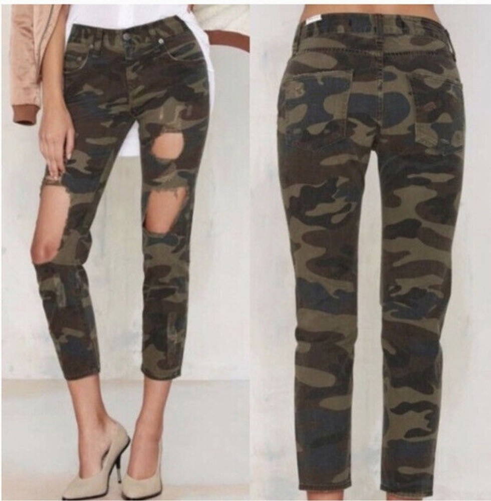 Lovers + Friends, Lovers Friends Ezra Camo Slim Cropped Boyfriend Jeans Size 27. Midrise ankle Waist measures approx 30 Rise measures approx 9.5 Inseam measures approx 26 100% cotton
