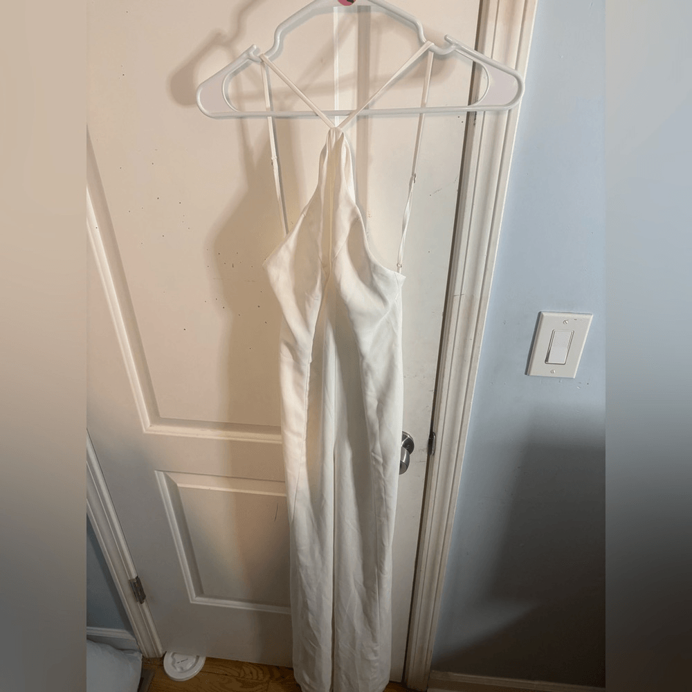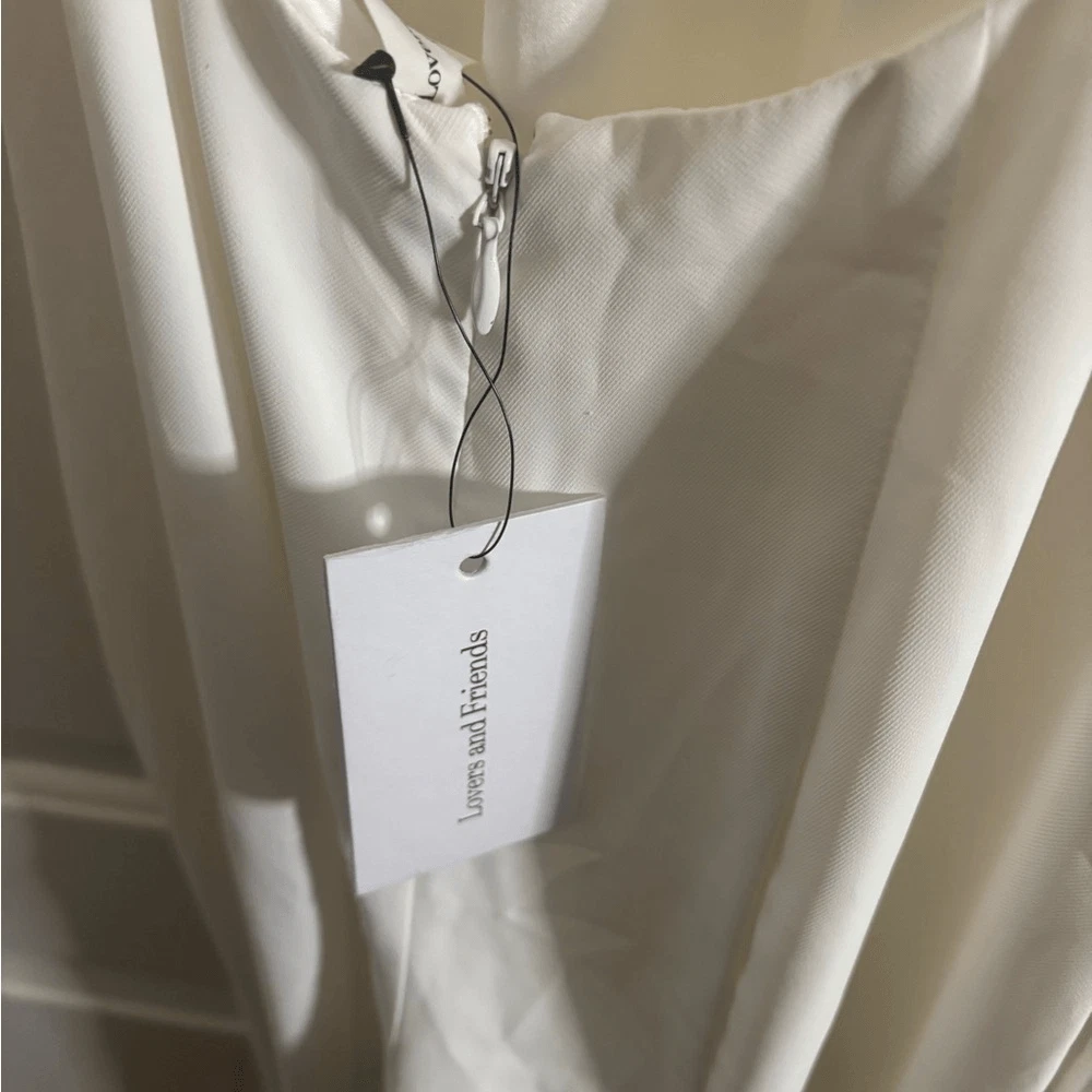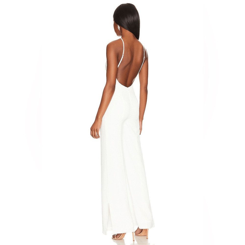 Lovers + Friends Gianni jumpsuit in white size xxs NWT Main material: 100% Polyester Lining: 97% Polyester, 3% Spandex Made in China dry cleaning Concealed zipper at the back Adjustable shoulder straps Midweight crepe fabric with plunging back and split cuffs Revolve item no. LOVF-WC301 Manufacturer Article No. ACJS356 S23