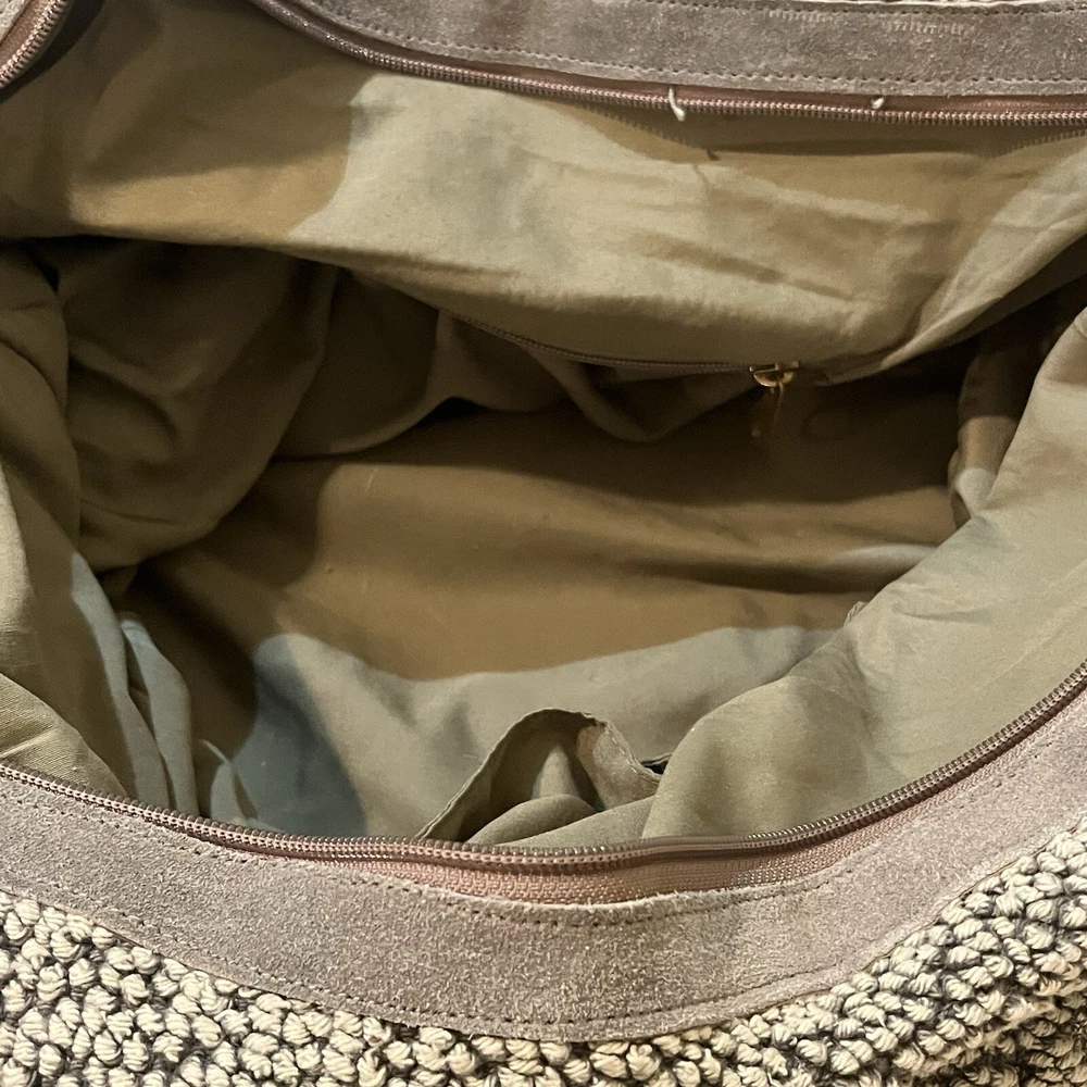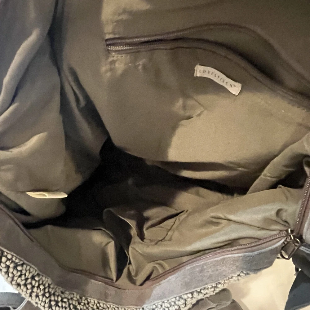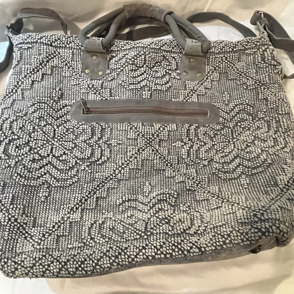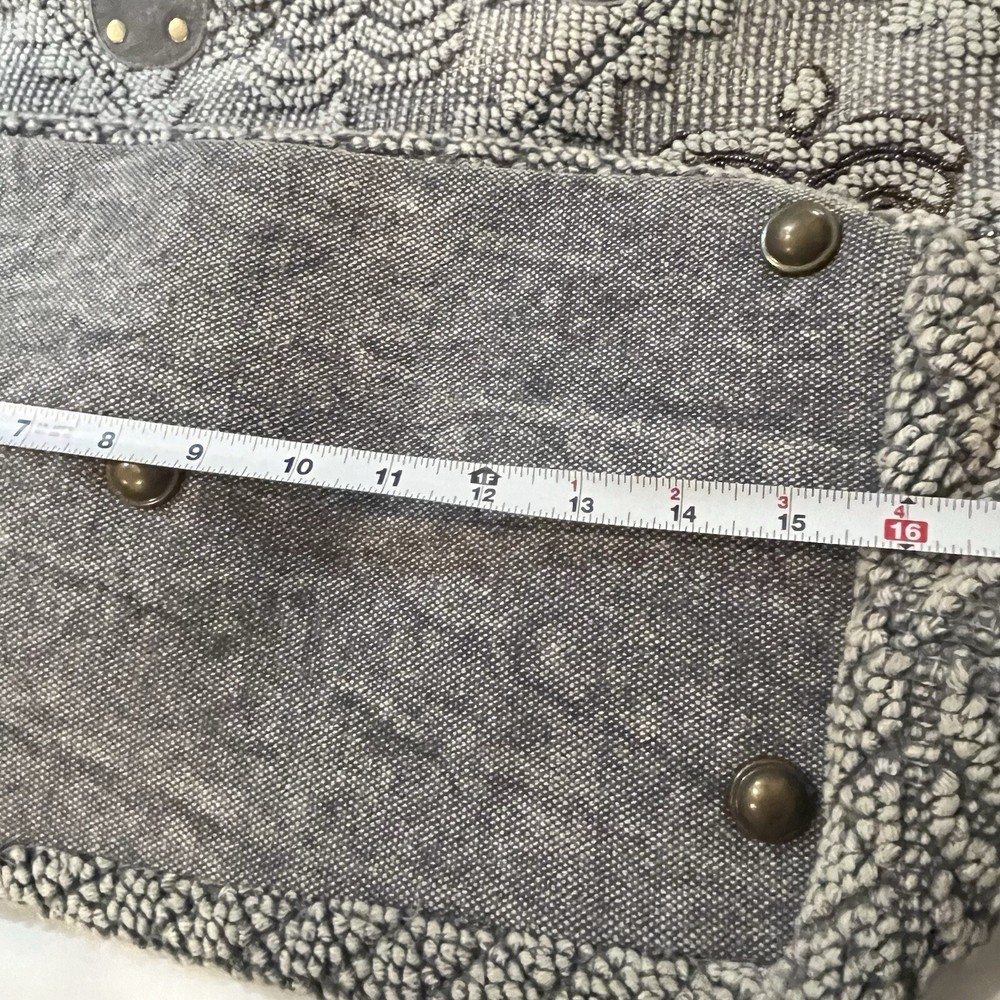 This Lovestitch tote is the perfect accessory for any bohemian-style outfit. The gray and tan color scheme, combined with beaded and embroidered accents, gives it a unique and stylish look. It has double handles and a shoulder strap for easy carrying, and its rectangular shape makes it suitable for travel or everyday use. The bag is made of cotton and leather, while the lining is made of cotton. It has various features such as inner and outer pockets, a mobile phone pocket, and bottom studs. The bag is packable and comes with a zip closure. With its spacious interior and large size, this tote is perfect for any occasion.