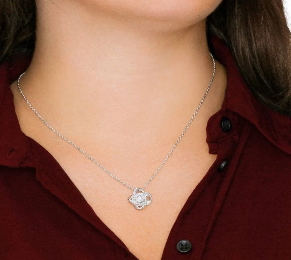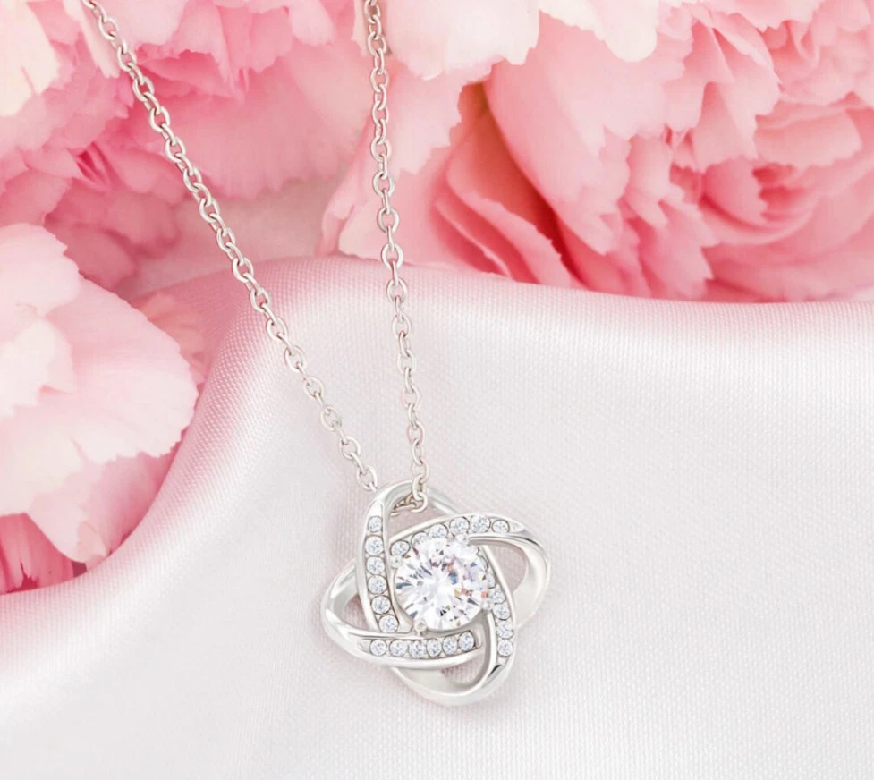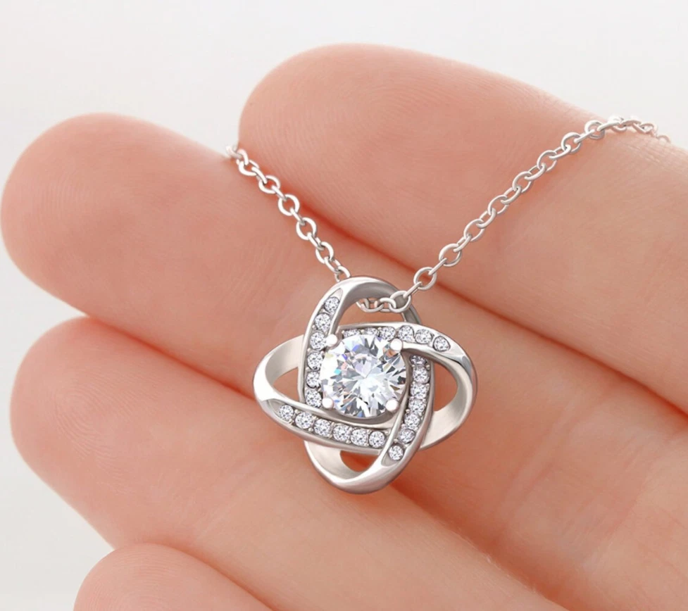 The Love Knot Necklace represents an unbreakable bond between two souls. This symbol of eternal love is a forever favorite and trending everywhere. Surprise your loved one with this gorgeous gift today! The beautiful Love Knot is crafted with brilliant 14k white gold over stainless steel, and swings from an adjustable cable chain, fastened securely with a lobster clasp. The center cubic zirconia crystal measures 6mm in diameter, and is surrounded with smaller cubic zirconia, showcasing added sparkle and shine to this gorgeous gift. You must see it for yourself! Specifications: • 14k white gold over stainless steel • 6mm round cut cubic zirconia stone • 18"-22" adjustable cable chain necklace • Lobster clasp attachment NOTES: If your item is used, no return policy will apply. ??Please message me through eBay's messaging If you have any complaints or concerns about a product or service. I want to make sure that your issue is addressed promptly and that I can find the best solution to meet your needs. As the Reputable Seller , I am committed to providing excellent customer service and ensuring that every customer has a positive experience with my Store. ?? Your feedback is important to me, and I want to do everything I can to make things right.