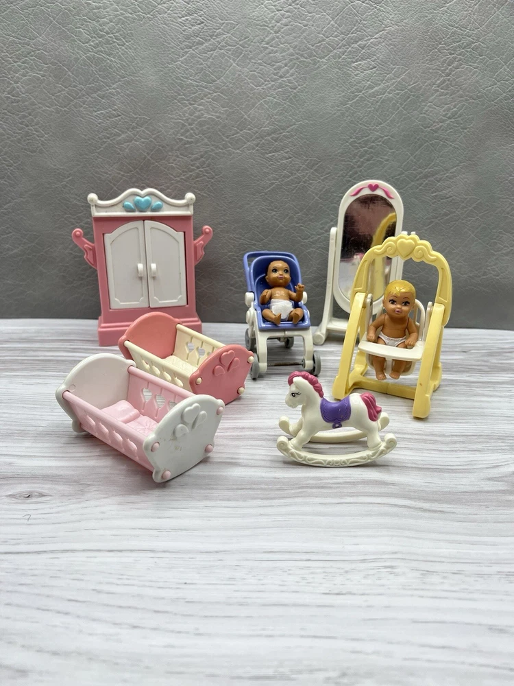 Fisher-Price loving family vintage dollhouse furniture and baby a lot consisting of nine pieces. Exact items in the photos are the exact items you receive. All items are in good condition. All of our items come from a smoke-free and pet free environment. Please visit our store to view more items like these.