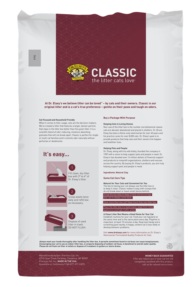 You may also like Extra Strength B12 Fast Dissolve Tablets Metabolism Support 5000 mcg 45 Count US 8.75 USD 9.21 USD Free shipping 5% off Evening Primrose Oil 1000mg Women's Health Supplement 75 Softgels GLA Balance US 10.13 USD 10.66 USD Free shipping 5% off Purina Wet Cat Food Appetizers Chicken Shredded Beef Grain Free Broth 5 Pack New 9.42 USD 9.92 USD Free shipping 5% off Vitamin C Gummies Immune Support Vegetarian Non-GMO Orange Flavor 250mg 70 Count 8.75 USD 9.21 USD Free shipping 5% off Square Porcelain Salad Plates Set of 12 Dishwasher Microwave Oven Safe New 28.01 USD 29.48 USD Free shipping 5% off Turmeric Curcumin Ginger Capsules 90 Count Vegetarian Non-GMO Herbal Supplement 8.75 USD 9.21 USD Free shipping 5% off Kitchen Small 1QT Ice Cream Maker for Sorbet, Gelato, and Frozen Yogurt, Summer 28.24 USD 29.73 USD Free shipping 5% off Adjustable T-Leg Ironing Board W/ Cotton Cover & Pad Durable Steel Frame New 32.33 USD 34.03 USD Free shipping 5% off (6 pack) 4-Part Carbonless Coaches Baseball/Softball Lineup Cards (17LU) 38.98 USD 41.03 USD Free shipping 5% off Vitamin C Gummies Immune Support Antioxidant Vegetarian 1000mg 60 Count Orange 14.54 USD 15.31 USD Free shipping 5% off Rapid Release Magnesium Citrate 100mg Capsules Bone Health Supplement 100 Count 11.24 USD 11.83 USD Free shipping 5% off Collapsible Laundry Hamper Durable Storage Tote Easy Carry Handles Portable New 23.91 USD 25.17 USD Free shipping 5% off This is Dr. Elsey’s original litter and is very popular with cat owners who want a hard clumping, low tracking litter. It features a larger, denser particle that stays in the litter box better than fine grain litters. It clumps hard and will not break apart in the litter box. The better the clump, the better the litter, and Dr. Elsey’s delivers the best clumps anywhere! Premium odor control is suitable for multi-cat households. Unscented and 99% dust free formula. Backed by our 100% satisfaction guarantee! An excellent clumping litter with multi-cat strength. Low tracking and 99.9% dust free. Unscented formula with natural ingredients and superior odor control. Dust-free cat litter will get the job done. Multi-Cat Strength. Unscented & 100% Natural. Deerfield Paper Hot Cups Leak Resistant 8oz 50 Cups Sleeve Catering Events New 43.93 USD 46.24 USD Free shipping 5% off Garage FastTrack Rail Multi-Purpose Hook Set 2-Pack Heavy-Duty Storage Solution 24.92 USD 26.23 USD Free shipping 5% off Puppy Dry Dog Food Chicken Brown Rice Recipe Whole Health Blend 6lb Kibble New 16.55 USD 17.42 USD Free shipping 5% off Mini Ceramic Table Lamp Oval Shape Fabric Shade Candelabra Bulb Home Decor New 17.3 USD 18.21 USD Free shipping 5% off Reversible Fleece Dog Bed Machine Washable Crate Mat Comfort Cushion Pets New 14.56 USD 15.33 USD Free shipping 5% off 4 Piece Microfiber Bed Sheet Set Deep Pocket Hypoallergenic Soft Durable Bedding 33.12 USD 34.86 USD Free shipping 5% off Heavy Duty T-Hinge 70lb Steel Zinc Tight Pin 8 Mounting Holes Durable Hinge New 8.95 USD 9.42 USD Free shipping 5% off Black Wood Serving Board Charcuterie Platter Kitchen Decor Easy Clean Durable US 21.91 USD 23.06 USD Free shipping 5% off Ceramic Rectangular Platter Serving Meats Veggies Floral Design Dishwasher Safe 26.98 USD 28.4 USD Free shipping 5% off Half-Size Steam Table Pans 8 Pack Stainless Steel Anti-Jam Durable Cookware New 91.43 USD 96.24 USD Free shipping 5% off Non Slip Velvet Hangers 50 Pack Heavy Duty Flocked Thin Suit Clothes Hangers New 27.3 USD 28.74 USD Free shipping 5% off Waterproof Eco-Friendly 30% Recycled PEVA Shower Curtain Set W/ Hooks 13-Piece 14.68 USD 15.45 USD Free shipping 5% off