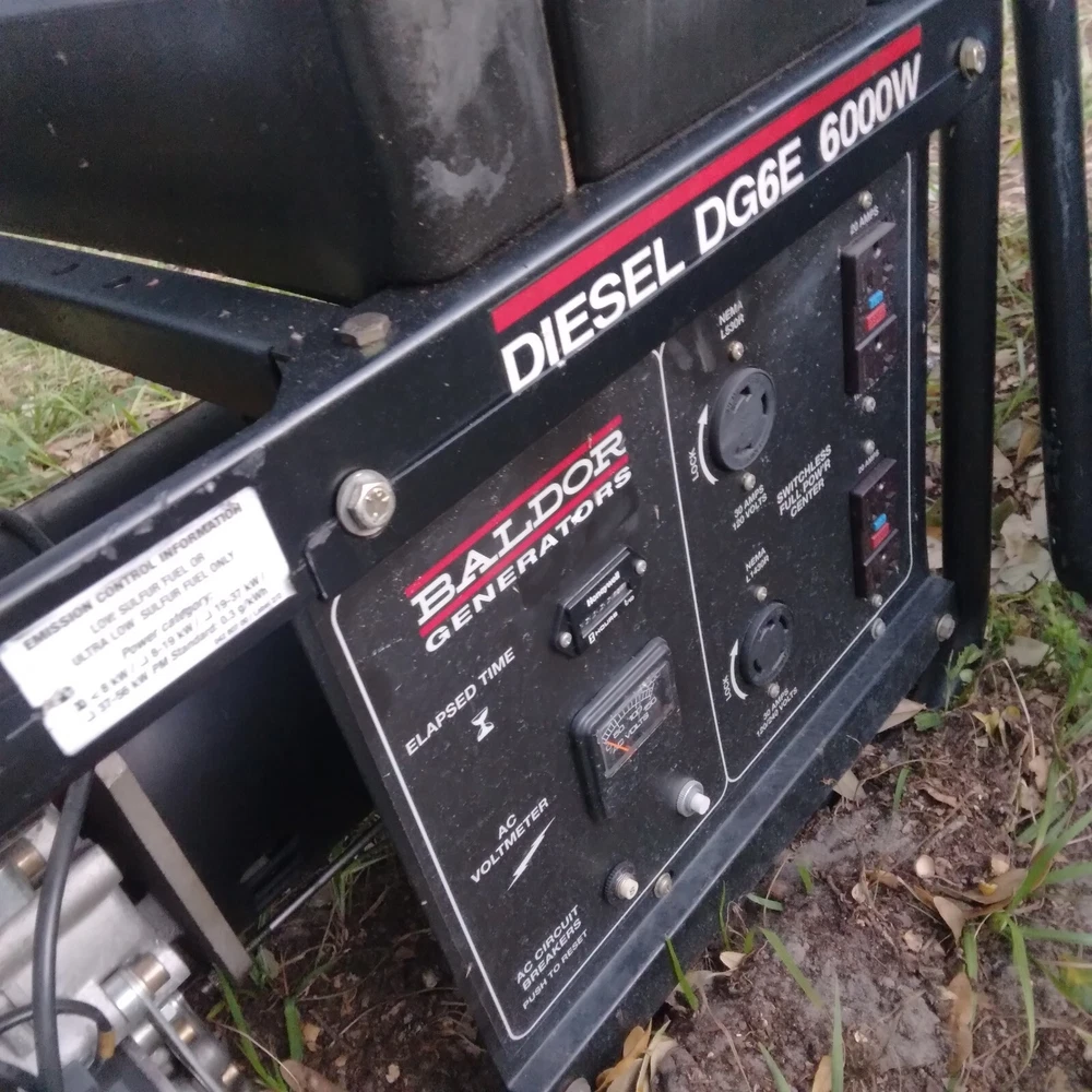 This Baldor diesel generator is a reliable and efficient option for commercial power needs. With a capacity of 6kW, it is suitable for a variety of business applications. The generator is designed for single phase power and runs on diesel fuel. The model number DG6E is a stationary type generator that is manufactured in the United States. It is ideal for use in business settings where a reliable and steady power source is required. The generator is made by Baldor, a trusted brand in the industry. This product falls under the category of business and industrial equipment, specifically in the generators subcategory.