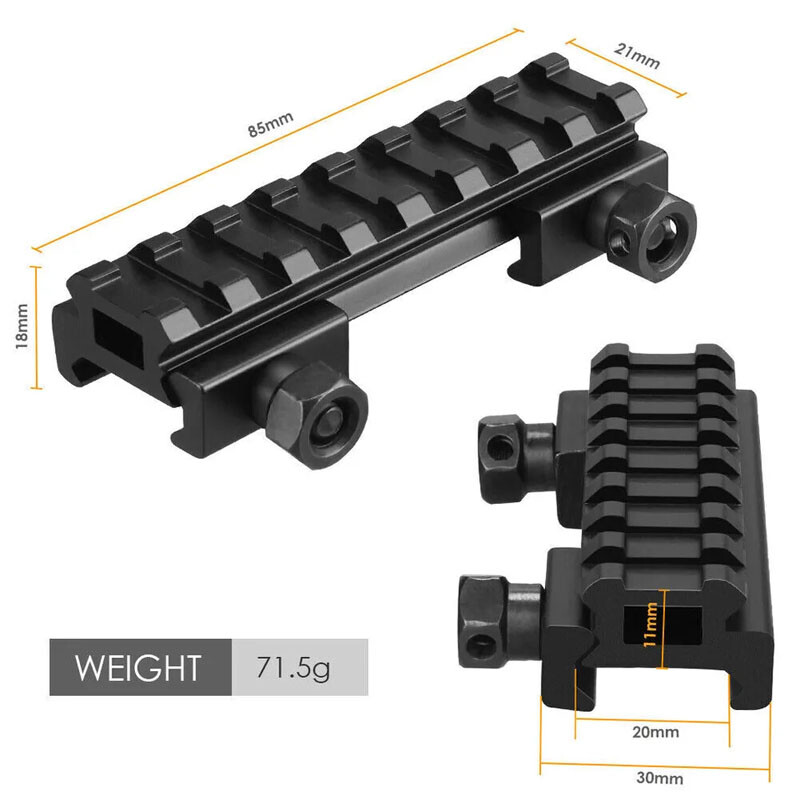 Low Profile 8-Slot Scope Riser Mount for 20mm Picatinny Rails