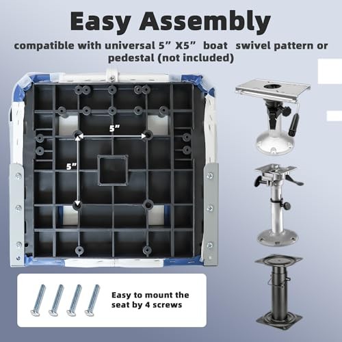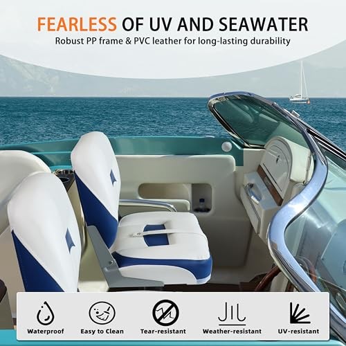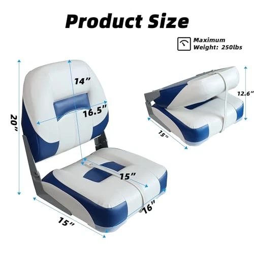 Return Policy Fast Delivery Trusted seller Boat Seats 2 Pack, Low Back Folding Bass tracker Boat Seat for Fishing Jon Pontoon, White&Blue Product Description Ergonomic Comfor: High backrest supports upper body for relaxation,The 13-cm thick sponge-padded seat cushion with high resilience provides optimal comfort; Designed with a widened seat and an ergonomic backrest, this boat seats greatly reduces fatigue during long boat trips Easy to Fold and Store:Equipped with flexible rust-proof aluminum alloy hinges,this fishing boat seat can easily fold in half, making storage on board easier;The tie-down strap makes it more convenient for latching Ultra-Strong Build:The stable high-impact plastic frame endows this folding boat seat with a strong loading capacity of up to 250 lbs; The sturdy rust-proof aluminum alloy hinges can also prevent the backrest from bending Long-Term Durability:The boat chair is constructed with heavy-duty Marine-grade vinyl upholstery that is tough enough for long-lasting use; The pontoon boat seat is waterproof, wear-resistant, and easy to clean after use Quick Installation:The boat seating is pedestal mounted, you simply bolt the seat to the base; Equipped with 4 locking screws located in the slots under the chair; Install on any standard 5'' x 5'' mounting bolt pattern; Fits most sizes of rotary joints or bases Shipping Returns Payment Shipping Shipping is FREE to all addresses other than APO/PO boxes in the lower 48 states. All our stock ships from US-based warehouses. Shipped via USPS or UPS (depending on location and package weight) Unless stated otherwise, all orders will ship within 24-72 hours of your payment being processed. Check our feedback to see the great reviews of FAST shipping we offer. Returns Seller does not accept returns Payment We currently accept payment via eBay managed payments only. Once payment is cleared, we will dispatch your shipment within 1-3 business days. Please refer to the "Shipping" tab for more information regarding shipping speed to your destination.