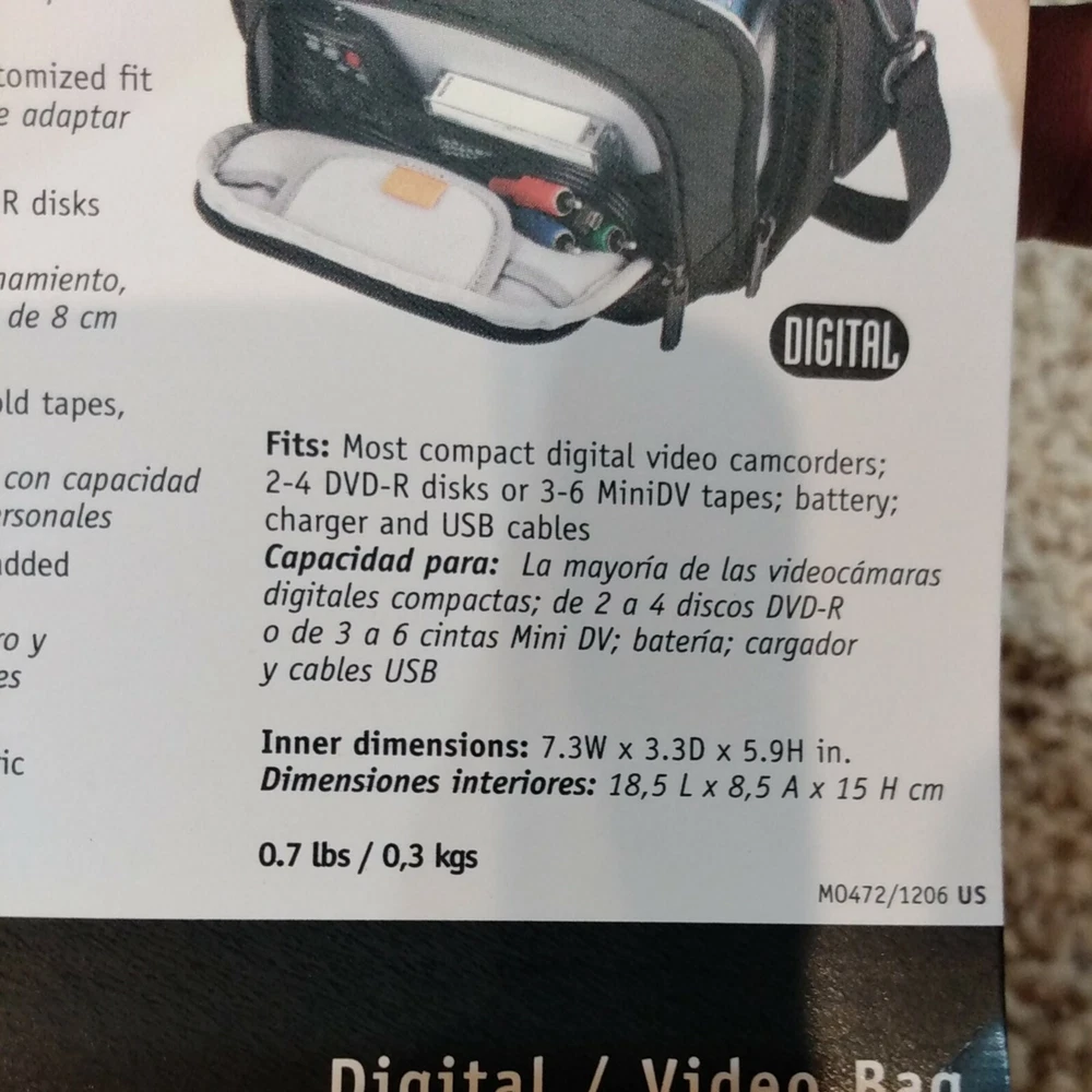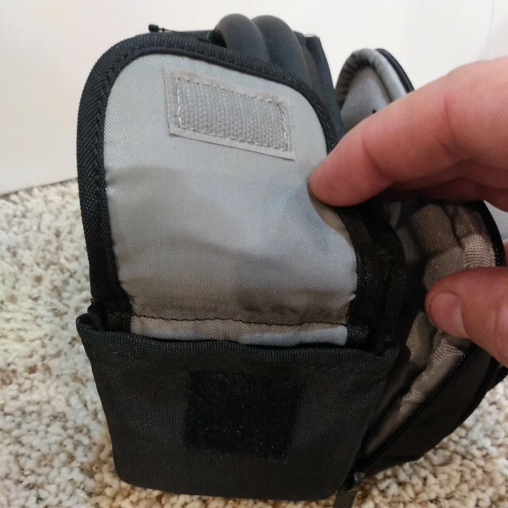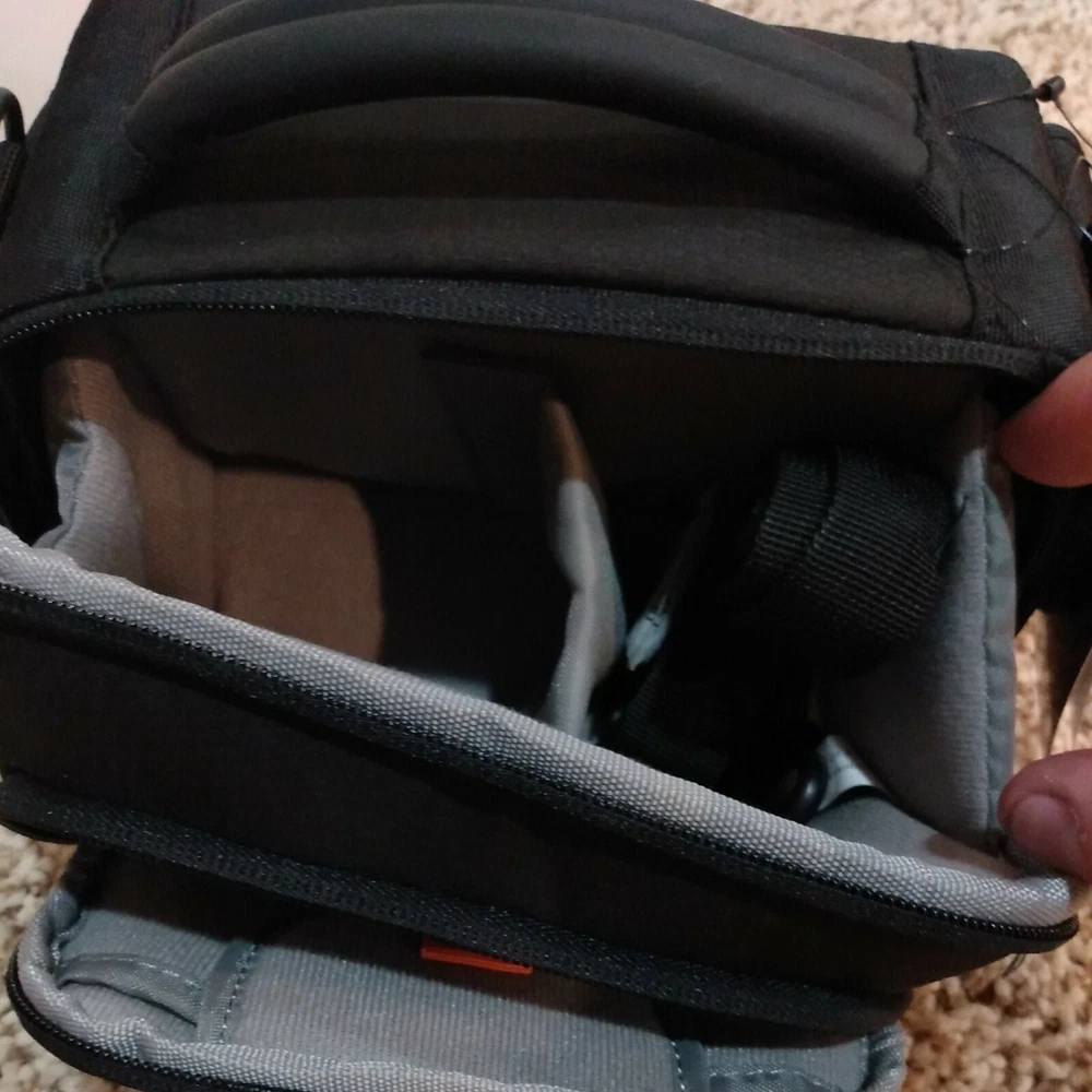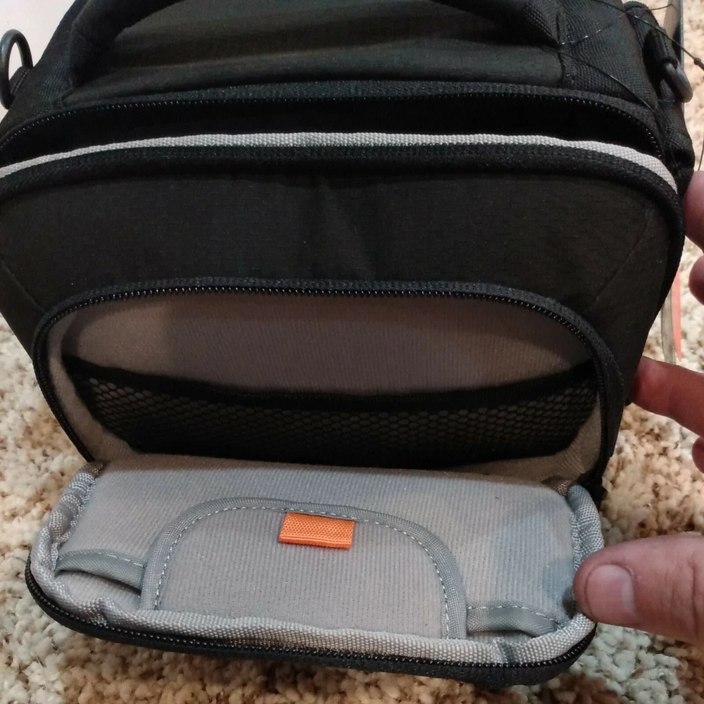 Lowepro Clips 120 Shoulder Bag for Digital Camcorder Black 9"x6"x6". New with tags. Fast, free shipping! * Hinged design provides quick, easy access * Soft, brushed tricot lining protects against dust & scratches * Adjustable divider creates a customized fit. * Media pocket holds 3.5 in DVD-RDL Disks or a mini DV tape. * Easily accessible side pockets hold tapes batteries or personal items * Adjustable shoulder strap and padded handle provide carrying options * Tough water resistant outer fabric protects against moisture
