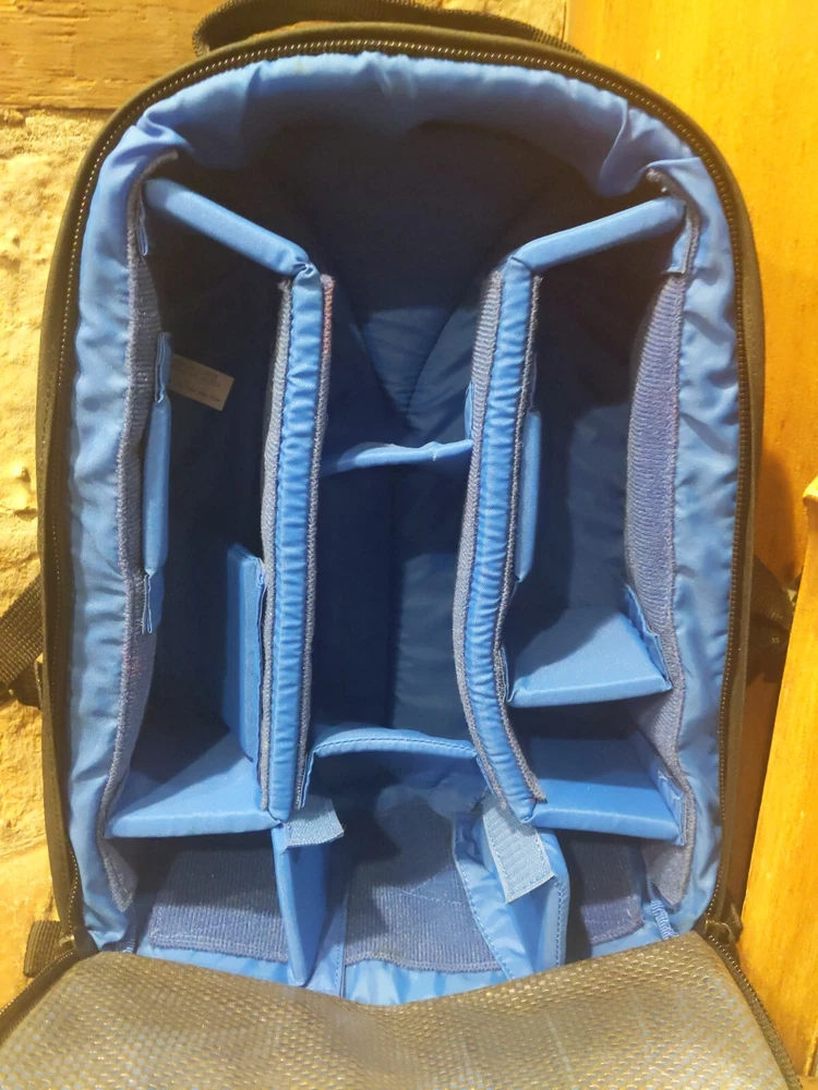 Lowepro Mini Trekker Classic Camera Backpack New old stock from a camera store clearance sale Black exterior with blue interior About 12" wide x 6" deep x 16" high MSRP $129.95 "Smaller than other Trekker Backpacks, the Mini Trekker is designed for photographers who want to take a 35mm SLR on a day trip instead of an expedition. The bag holds an SLR with an 80-200 f/2.8 lens attached as well as an additional body and four or five more lenses. There is also a "hidden" front pocket with an Overlap Zipper (plus four more pockets). Attachment loops on either side let you expand your carrying capability with optional SlipLock accessories."