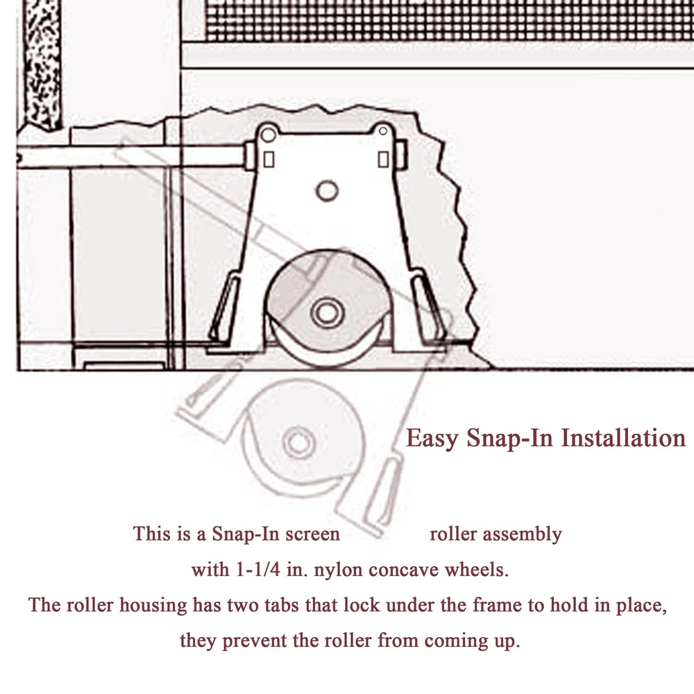 Commonly used to replace gliding patio door insect screen bottom roller assembly for Andersen 200 Series Perma-Shield Gliding, 200 Series Narroline Gliding, 400 Series Frenchwood Hinged, 400 Series Frenchwood Gliding and A-Series Gliding Patio Doors. Compatible with gliding insect screens manufactured from 1991 to present. Works with upper screen rollers part #1997063. Edge adjustment arm allows for easy and quick adjustments with a flat head screwdriver. No tools required to install, the roller housing has two tabs that lock under the frame to hold in place. 2 pack of lower screen rollers included, we recommend replacing both rollers at the same time.