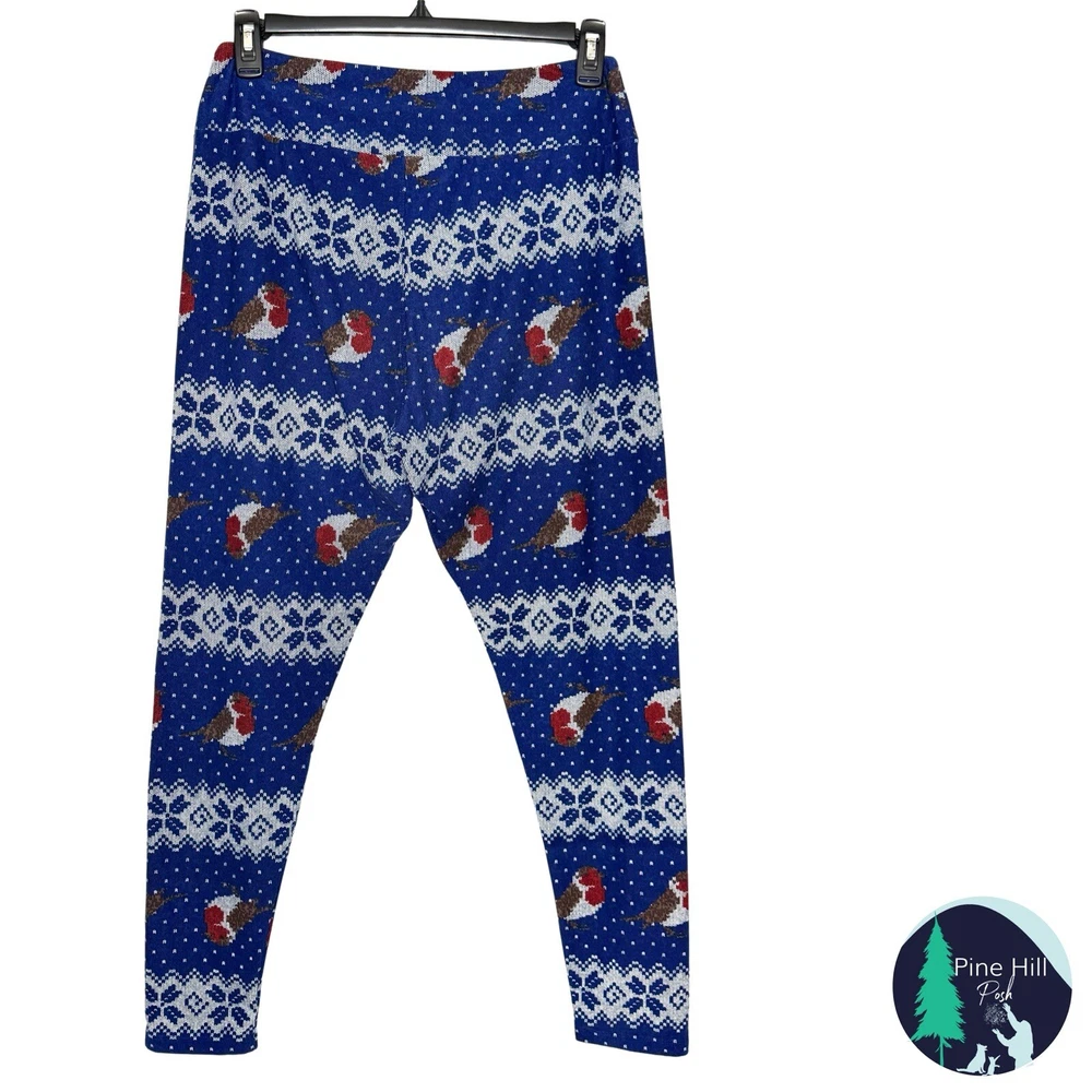 Women’s LuLaRoe TC2 Leggings Plus Size 18 - 28 … RARE print … winter bird theme … bright robins on royal blue festooned with fair isle white lace & polka dots … festive winter holiday feel … comfortable high rise silhouette … super soft, stretchy fabric … SEE CLOSE UP PHOTOS & CONDITION NOTES. For a good fit, please COMPARE MEASUREMENTS BELOW with a garment that fits you well. PRELOVED ITEMS MAY VARY IN SIZE due to wash or wear. Features: high rise, elastic waist, SUPER SOFT Size: TC2 Plus Size 18 - 28 Approx Measurements (laid flat): Waist 15”, Hips 20”, Inseam 28”, Length 40”, Front rise 14” Condition: Only wore these 2 or 3 times as pjs as they were too large for me. Light fading in a couple of spots -see photos. Otherwise excellent—no stretching, pilling or holes. Color: Blue / White Fabric: Polyester / spandex Care: Machine washable Feel free to ask questions. I want you to love your purchase! ❤️ 🌲 COMBINED SHIPPING I’d love it if you check out my other listings & am happy to combine shipping. If purchasing multiple items, add them to your cart, pay, & I will gladly refund you the extra shipping after I package & weigh the items. NOTE: If you have purchased an item, but aren’t done shopping, please email me to let me know. Once I purchase a shipping label for your order, I won’t be able to combine shipping charges. PINE HILL POSH is a PET-FRIENDLY home. I do my best to remove all dog & cat hair, but I apologize in advance if any sneaks into your package. It happens when you live with a curious black cat & a fluffy German shepherd/lab mix! If you have pet allergies, you may not want to buy from my shop. 🤦🏻♀️ I work to portray/describe colors as accurately as possible. I’m not responsible for differences caused by various devices. I inspect every listing carefully & note any flaws I find, but nobody’s perfect! If you find something wrong when you receive your order, let me know right away. I’ll do my best to make it right. Crossposted