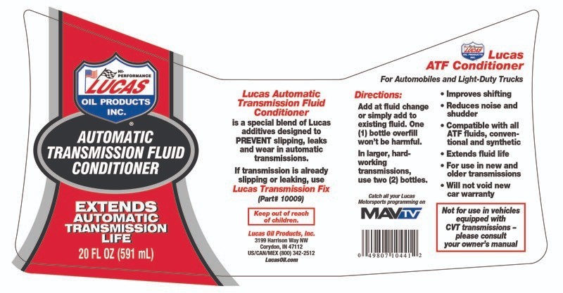 Lucas Oil 10441 Automatic Transmission Fluid ATF Conditioner 20 oz - Qty 12 Part # 10441 x12 Lucas Oil Key Benefits Improves shifting Reduces noise and shudder Compatible with all ATF fluids, conventional and synthetic Extends fluid life For use in new and older transmission Will not void new car warranty Extends automatic transmission life Not recommended for CVT transmissions and transmission fluids Not recommended for Dual-Clutch transmission Lucas Oil Specs Volume: 20.00 oz. Formulated with the finest base oils and special Lucas additive package, Lucas Oil's Automatic Transmission Fluid Conditioner is designed to PREVENT slipping, leaks and wear to provide smooth, quiet operation while conditioning seals to extend the life of the transmission.