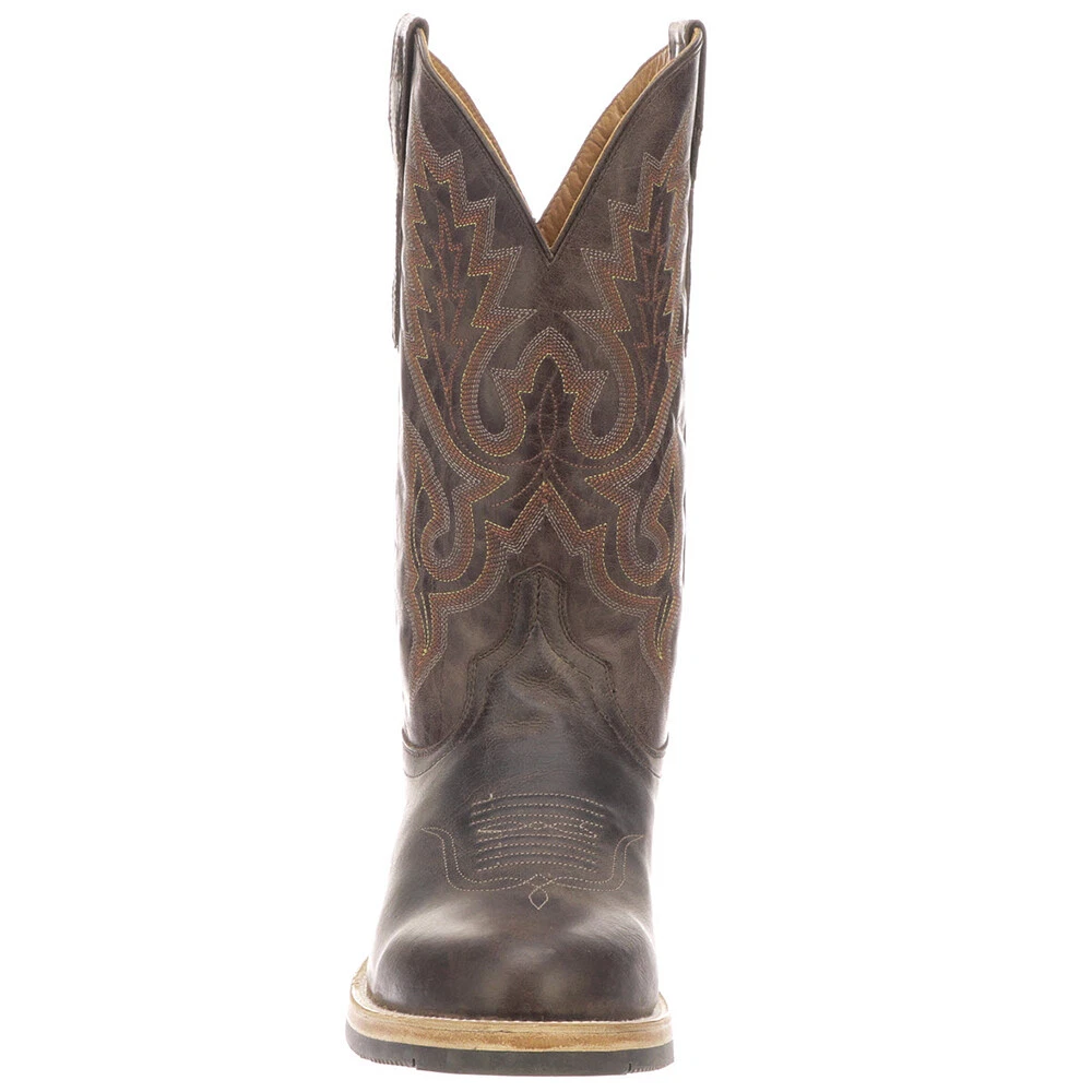 Rusty Embroidery Round Toe Cowboy Boots M0028-CF Product Details Full-grain leather upper Pull on entry Removable footbed Oil and slip resistant rubber outsole 1.5 inch heel Rusty is a roper style barn boot in the Lucchese Performance Collection. The technical rubber outsole features oil and slip resistant technology, including grooves that release mud and muck with every step. The style features a removable padded insole for comfort. Rubber outsole. Imported. Additional Details Color: Brown Occasion: Casual Gender: Mens Age: Adult Brand: Lucchese