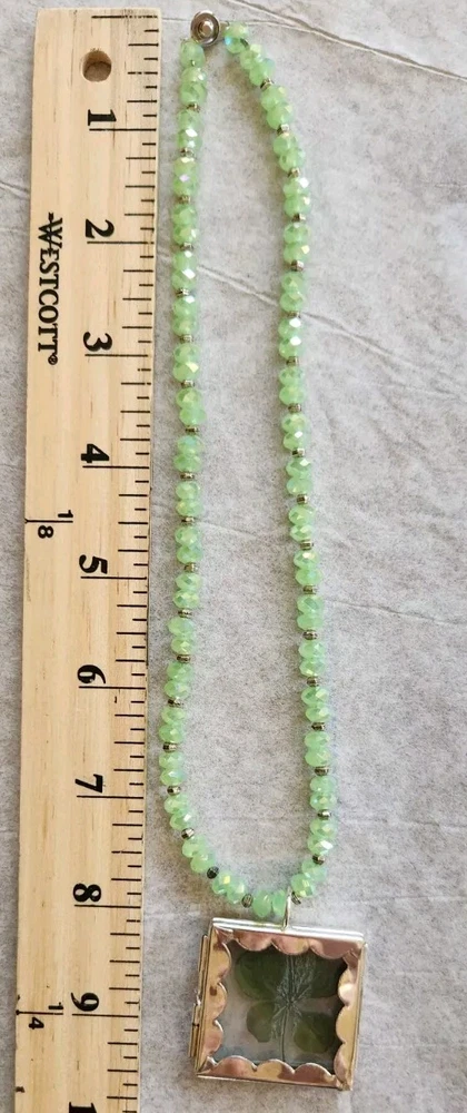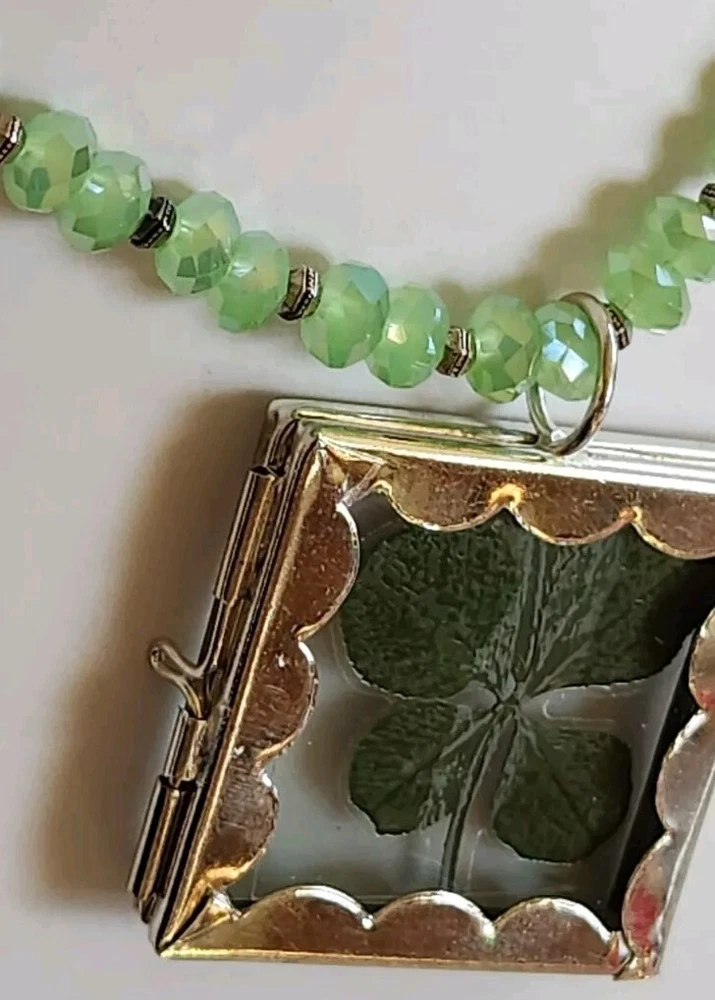 REAL 5 LEAF CLOVER /LUCKY/ST PATRICKS DAY Clovers are found in the Pacific North West grew naturally in the wild. Since the four leaf clover is naturally grown it is rare in shape Clover is laminated and painted green maintain color LIGHT green faceted beads 4 LEAF CLOVERS REPRESENT FAITH HOPE LOVE LUCK