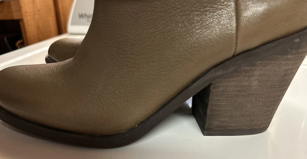 Elevate your shoe game with these Lucky Brand Brown Cappuccino leather fold over booties in size 8M. With an almond-toe shape, slip-on closure, and high heel height, these boots are perfect for any occasion. The fold-over design adds a trendy touch, while the leather upper material and outsole make for a durable and long-lasting shoe. These boots are not only stylish but versatile as well, making them a must-have addition to any wardrobe. The Lucky Brand brand ensures quality, and the dance and city themes will have you ready for any adventure. Made in China, these boots are a steal for any fashion-forward woman. New without tags or box See photos. - no wear -