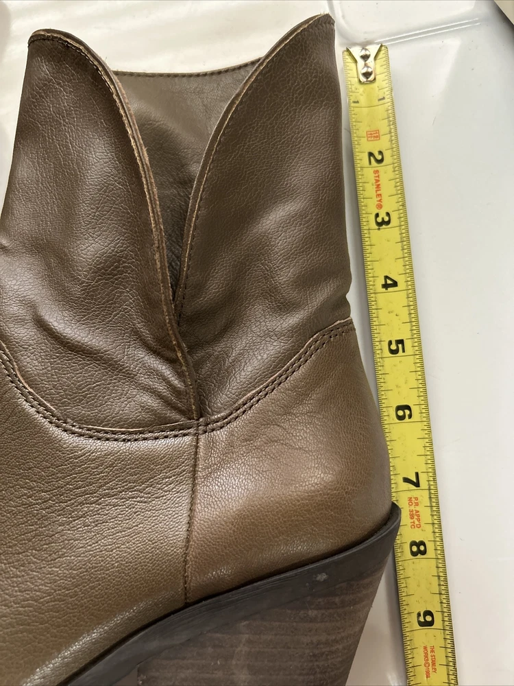Heel Style: Block Model: Fold over bootie US Shoe Size: 8 Calf Width: Medium Accents: Fold Over Theme: Baroque, Bohemian, City, Clubwear, College, Cowgirl, Dance, Equestrian, Music, Nature, Preppy, Southwestern, Wedding, Minimalist Shoe Width: Standard Color: Brown Cappucinno Outsole Material: Leather Closure: Slip On Type: Boot Toe Shape: Almond Toe Style: Bootie Character: Boots Pattern: Solid Heel Height: High (3-3.9 in) Department: Women Upper Material: Leather Brand: Lucky Brand Country/Region of Manufacture: China