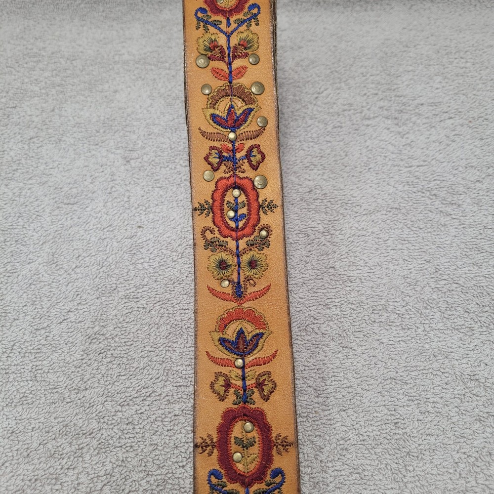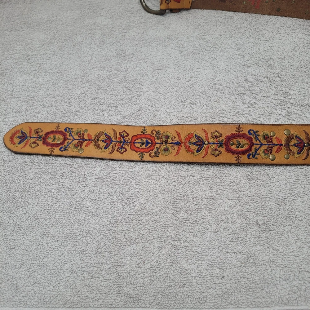 Lucky Brand Floral Embroidered Women’s Leather Belt XL. Belt is 46.5 inches long and 1.75 inches wide. Very nice condition. See photos.