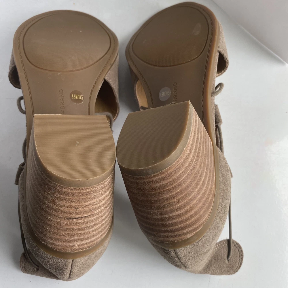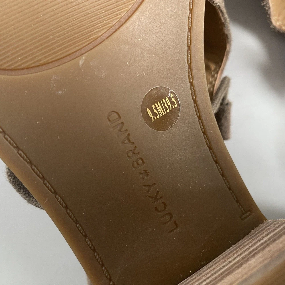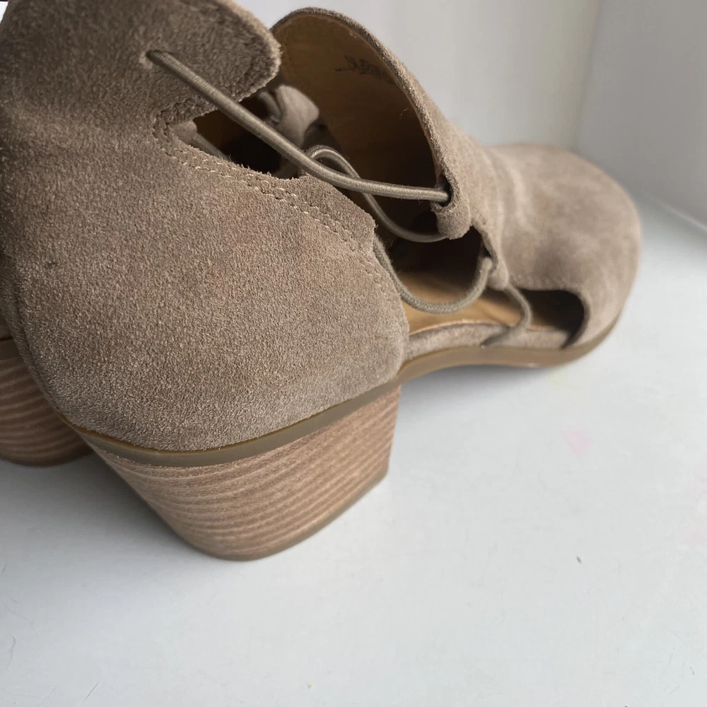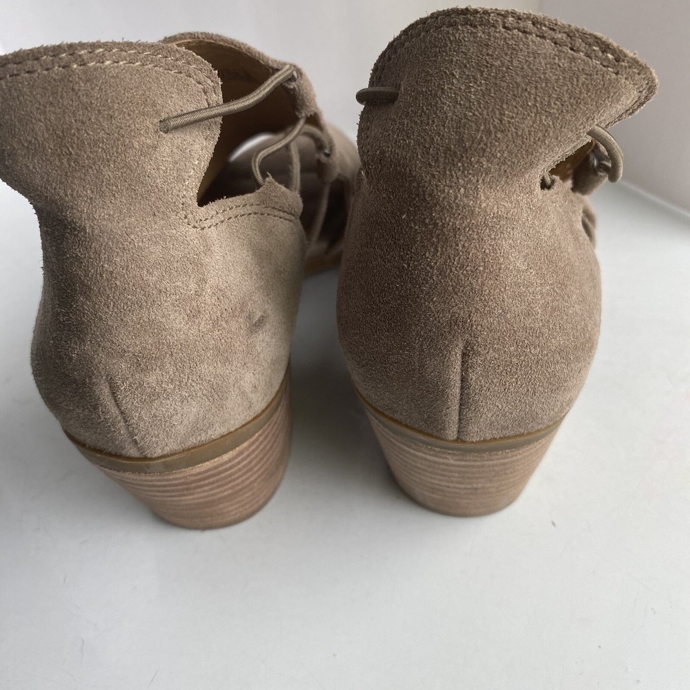 ******** please check all the pictures thoroughly thank you ****** Elevate your shoe game with these Lucky Brand peep toe booties. The slip on design with a chunky heel and cutout suede detailing make them perfect for any occasion - from casual to formal, workwear to party. The beige leather upper gives them a classic, versatile look that will go with any outfit. These booties are made for walking with their comfortable features, such as leather lining and insole. The studded accents add a fashionable touch, while the ankle-length shaft style shows off the peep toe design. Don't miss out on these must-have fashion and bohemian themed boots.