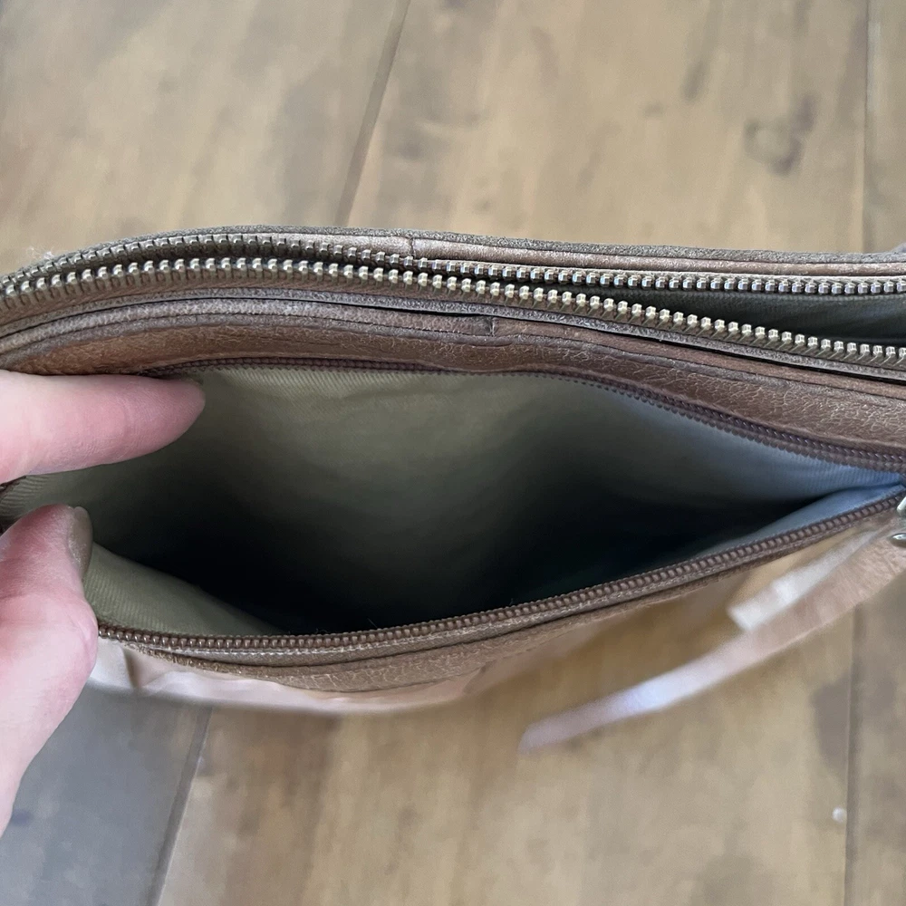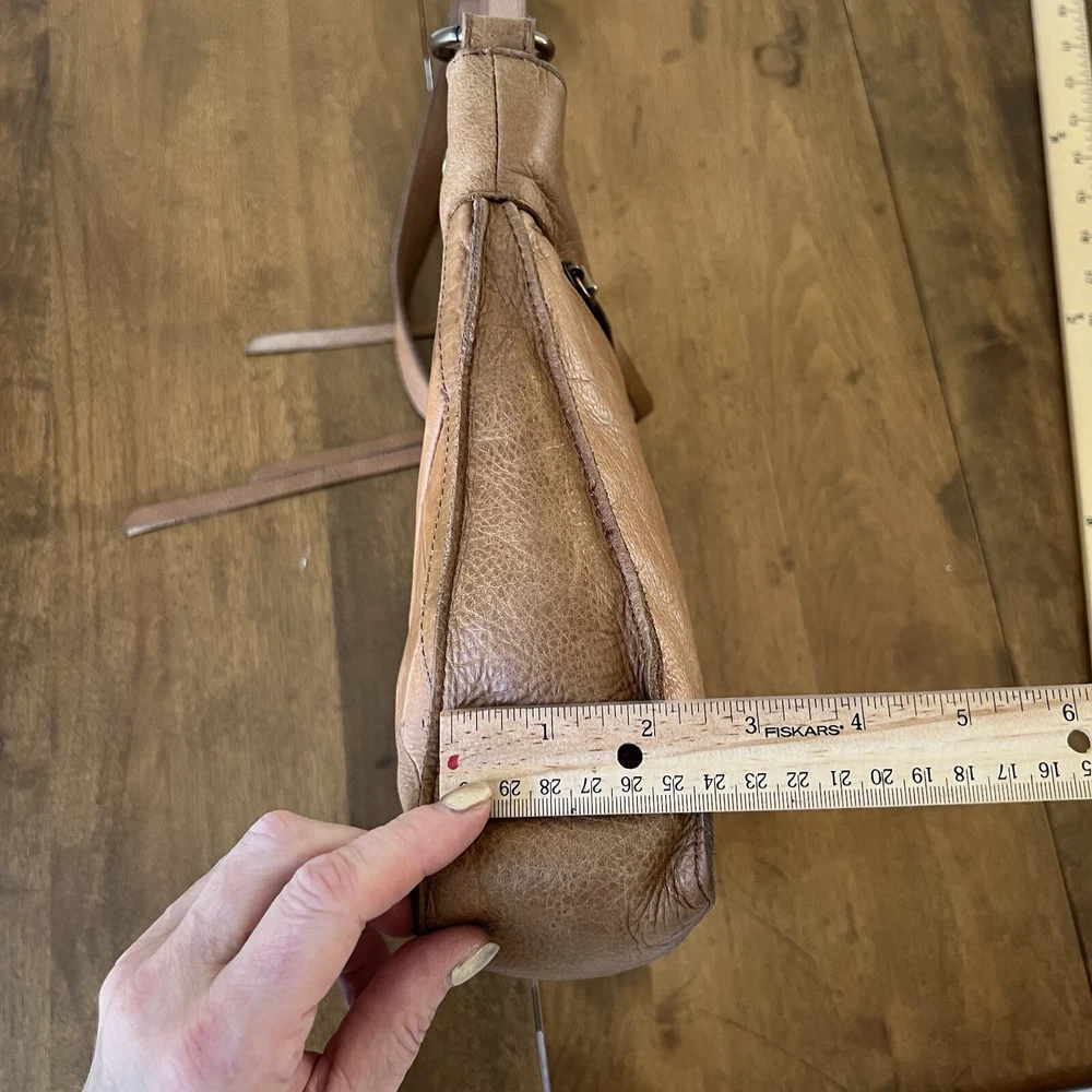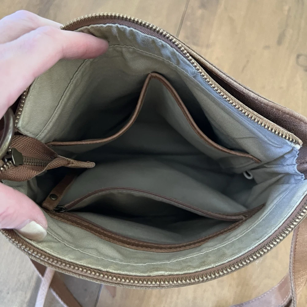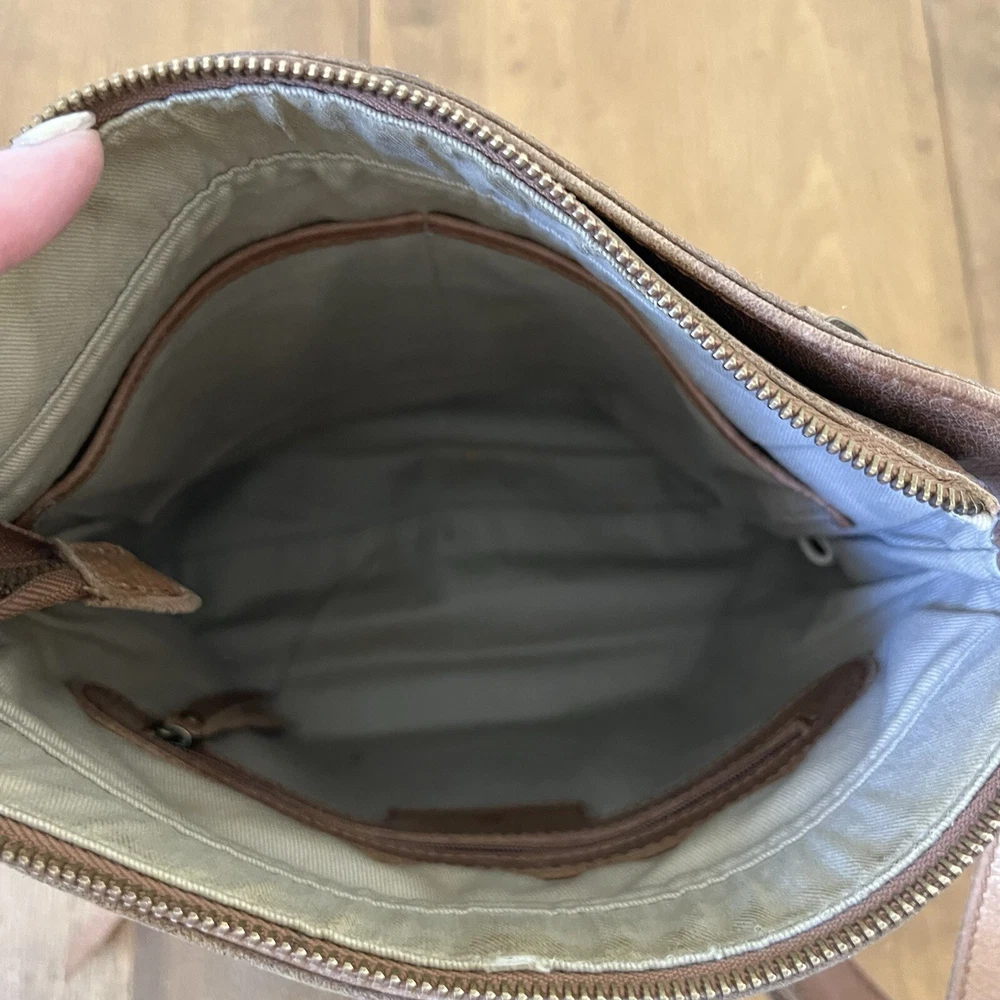 This Lucky Brand Rayla Crossbody Bag is a must-have for anyone who loves the bohemian style. The bag is made of high-quality brown leather and features a patchwork design that adds a unique touch to your outfit. It has a zip closure and an adjustable crossbody strap that allows you to carry it comfortably on your hip. The bag has a rectangular shape and measures 10.5 inches in height, 10 inches in width, and 3 inches in depth. It has brown tassels and a zipper for added security. The interior is lined with brown fabric and has inner pockets for easy organization. This bag is perfect for travel and casual occasions. Get your hands on this Lucky Brand Rayla Crossbody Bag today!