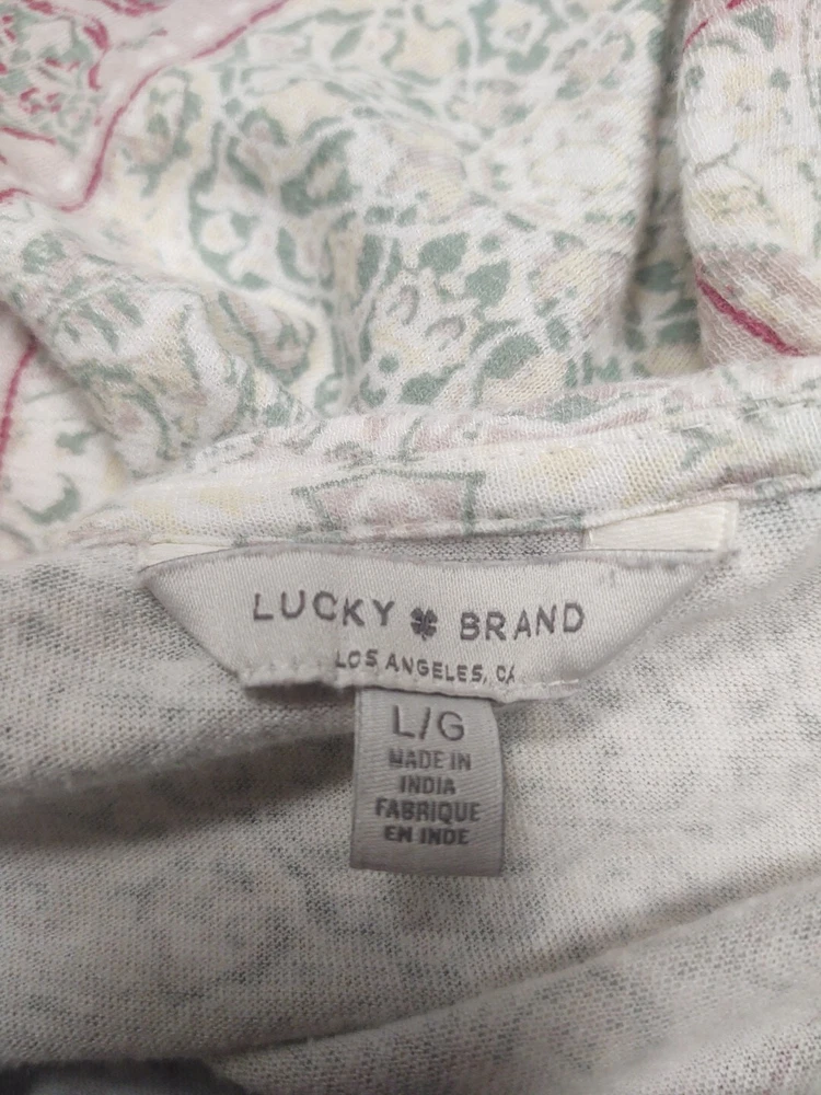 Lucky Brand Shirt Womens Large Multicolor 6% Linen Peasant Blouse Top 1154
