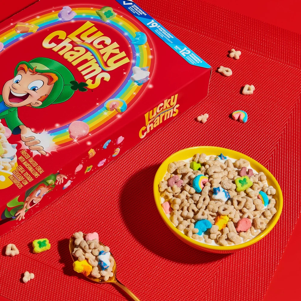 Lucky Charms Gluten Free Cereal with Marshmallows, Kids Breakfast Cereal, Mega Size, 26.1 oz Description Make mornings more magical with irresistible Lucky Charms Cereal with Marshmallows. Every box brings Lucky's mix of marshmallow hearts, stars, horseshoes, clovers, blue moons, unicorns, rainbows, and tasty red balloons to your breakfast table. Kids will have fun spotting their favorite marshmallow shapes floating in cereal milk! Each serving of this frosted, toasted cereal with marshmallows provides 19g of whole grain (at least 48g recommended daily), 12 vitamins and minerals, and a good source of calcium. Enjoy this marshmallow cereal as a magically delicious breakfast addition, fun kids snacks, or an ingredient in homemade marshmallow cereal bars. Take some crispy cereal to go in a lunch box or school snack tote. Or, make it a part of your dessert bar, road trip snacks, or sweet and salty trail mix recipes. However you enjoy it, Lucky Charms cereal is part of General Mills, spreading goodness from tots to grown-ups. Features: MARSHMALLOW CEREAL: A frosted, toasted cereal featuring Lucky's classic marshmallow hearts, stars, horseshoes, clovers, blue moons, unicorns, rainbows, and tasty red balloons; It's magically delicious GLUTEN FREE: A gluten free cereal with 19g whole grain (at least 48g recommended daily), 12 vitamins and minerals, and a good source of calcium MORNING OR SNACK TIME: Enjoy it as part of a quick breakfast or easy snack for the whole family; Add a little magic to any lunch box by packing crispy cereal as school snacks RECIPE INGREDIENT: Sprinkle frosted cereal with marshmallow over ice cream, desserts, iced cake and more as an added treat CONTAINS: One 26.1 oz Mega Size cereal box of Lucky Charms Gluten Free Breakfast Cereal with Marshmallows Product Details: Brand: Lucky Charms Flavor: Marshmallow Age Range (Description): Child Unit Count: 26.1 Ounce Number of Items: 1 Product Dimensions : 3.1 x 9.4 x 13.55 inches; 1.63 Pounds UPC : Manufacturer : GENERAL MILLS SALES INC. Country of Origin : USA Handling We will ship all orders within 3 business days of payment. Delivery We do not ship outside of the Continental US. Feedback We take our reputation seriously, we buy and sell online, so we understand the value of trust. If you are unsatisfied with your order, please contact us and we will work with you to resolve it to your satisfaction.