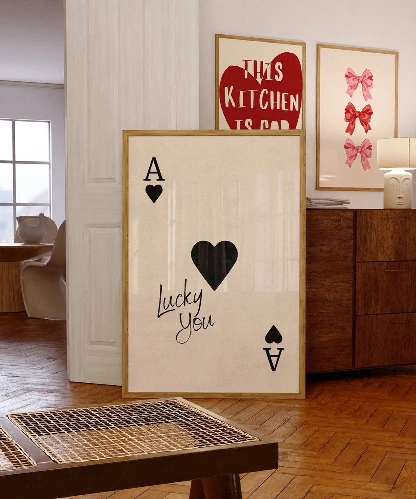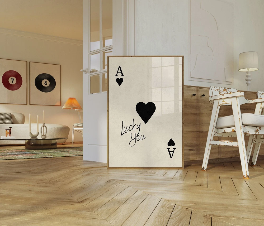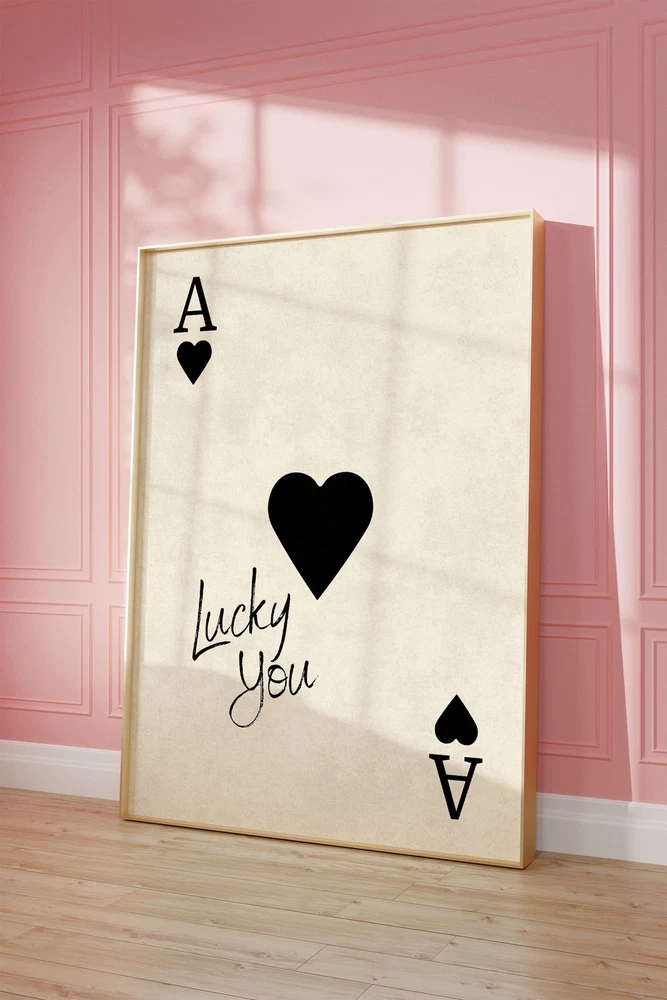 Lucky You Ace Of Hearts Poster Trendy Wall Art Motivational Quote Retro Poster Preppy Room Deco Material: Premium luster photo paper Print type: Inkjet printing One side printed + The finish provides the highest possible resolution and color saturation + Lasts up to 200 years in color and 400 years in black-and-white + Printed on high-quality resin-coated photo base paper medium + Posters can be hung with double-sided tape, tacks, or framed + Hand washing with a gentle cry cloth is recommended for extended durability I will hand select the best choice of paper for your chosen design to ensure top quality results for a beautiful, bright and luxurious print. All prints are sealed in cellophane slips for protection during transportation, and are shipped in a protective cardboard envelope.