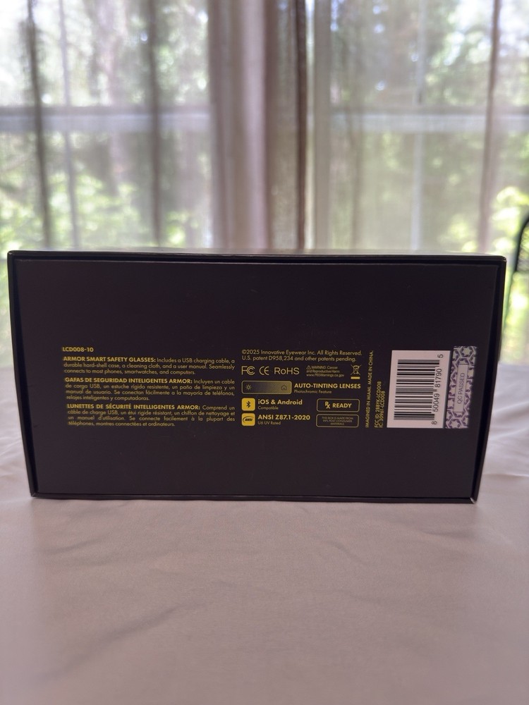 Lucyd Armor Smart Safety Glasses - Bluetooth Audio, AI Assistant, UV400, ANSI Z87.1 Certified Experience the perfect blend of protection, technology, and convenience with these Lucyd Armor Smart Safety Glasses. Designed for both work and everyday use, these glasses offer high-end safety features along with cutting-edge smart technology. Key Features: • Bluetooth Connectivity: Effortlessly pair with your smartphone for hands-free calls, music streaming, and voice assistant control (ChatGPT, Siri, Google Voice via the Lucyd AI app). • Open-Ear Speakers & Built-in Microphone: Stay aware of your surroundings while enjoying crystal-clear audio and easy voice commands. • Light-Adaptive, Self-Tinting Lenses: Seamlessly transition from clear indoors to dark outdoors for optimal vision in any environment. • UV400 Polarized Lenses: Block 100% of harmful UV rays and minimize glare for maximum eye protection. • ANSI Z87.1 Certified: Built for high-impact environments, these glasses meet strict safety standards—perfect for work sites, outdoor activities, or everyday wear. • Durable TR90 Frame: Lightweight, flexible, and extremely durable for all-day comfort. • Long Battery Life: Enjoy up to 8 hours of continuous use on a single charge with the included magnetic charger. • Voice Assistant Compatibility: Fully compatible with ChatGPT, Siri, and Google Assistant for easy voice-activated tasks.