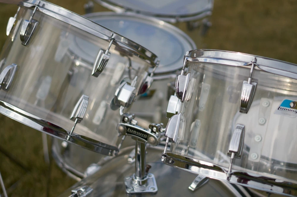 First Run of Ludwig Vistalite. Original owner. Purchased in 1972. Very lightly used and carefully protected. SET INCLUDES: -Left Wing Tom 13" Badges #969901 -Right Wing Tom 14" #969932 -Floor Tom 16" #969739 -Floor Tom 18" #975221 -Kick 24" #956649 -Matching 5x14" Snare Drum #997434 Zildjian cymbals 70's (Thin stamp) set includes: -18" Crash/Ride -14" New Beat Hi-Hat Set -16" crash -20" Mini-cup Ride (rare) COMMENTS: Toms and kick were always transported in cloth cases. No shell cracks. No rust. Kick hoops have a few paint chips (easy to touch up) Kick petal (Rogers Swiv-o-matic) needs petal stay plate replacement or weld repair. I used duct tape. Lovingly cared for, cleaned and polished regularly. 16 years of actual play. Been in dry storage in original cases for the last 35 years.