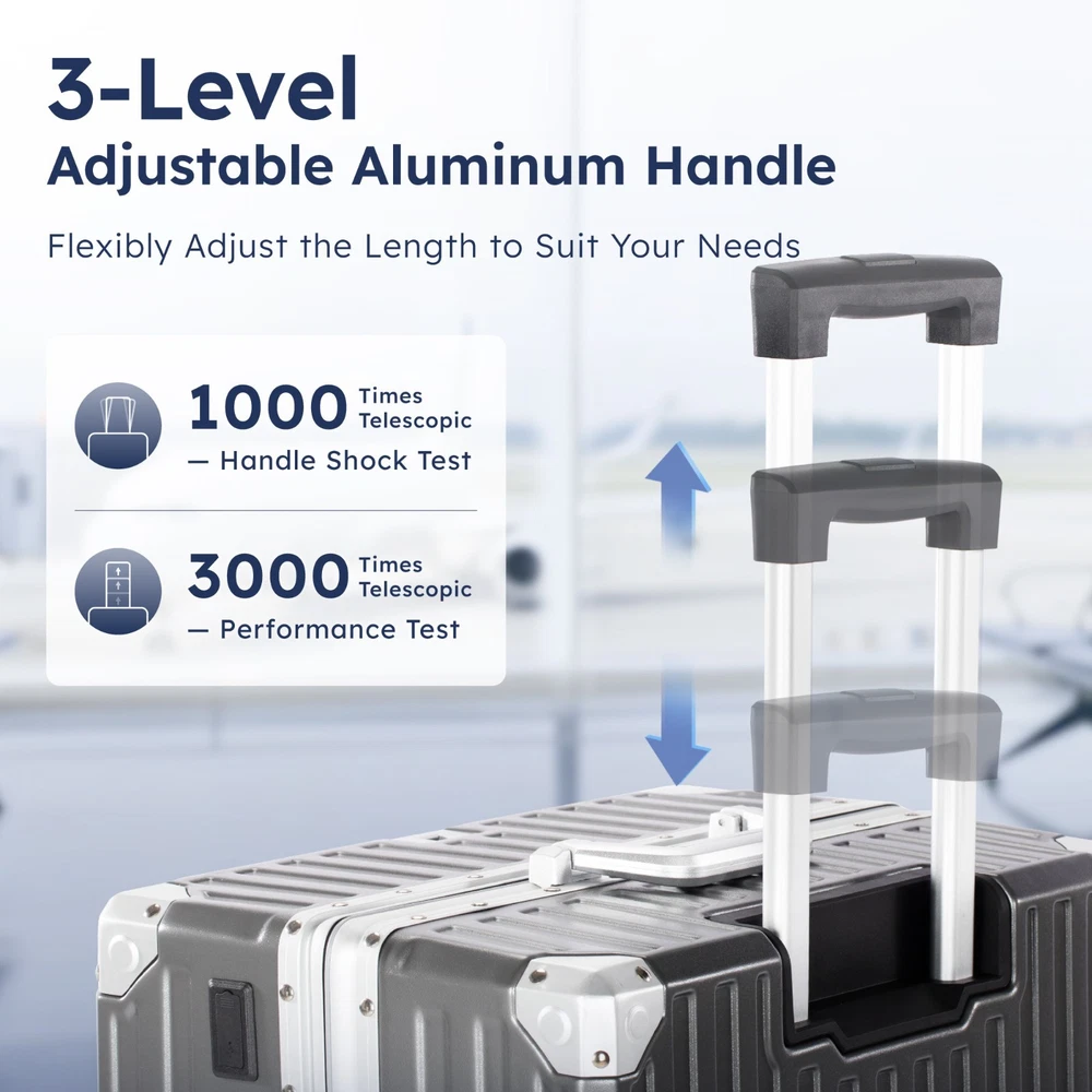 Product Description: Travel in style and comfort with our Multi-functional Luggage. Designed for the modern traveler, this suitcase offers ample storage space to fit all your needs. Featuring durable materials and smooth-rolling wheels, it effortlessly glides through busy airports and train stations. The spacious interior includes organized compartments and pockets to keep your belongings tidy. Plus, its sleek design adds a touch of elegance to your journey. Whether you’re taking a weekend getaway or a long vacation, this luggage is the perfect companion. Experience hassle-free travel with our versatile suitcase! Feature: Travelling just got easier with our sleek and stylish luggage! Designed for quick access, our luggage features a quick open system that allows you to reach your essentials in no time. Whether you’re heading on a short trip or a long vacation, the 3-level adjustable feature lets you customize the size to fit your needs. Made with durable materials, this luggage is built to last. Plus, its lightweight design makes it easy to carry around. Get ready for your next adventure with our versatile and functional luggage – the perfect travel companion! Our products come with 1-year-warranty, ensuring that there will be no defects in materials and workmanship under normal use. We do our best to hear from customers and update our products. If you have more problems, please be free to contact